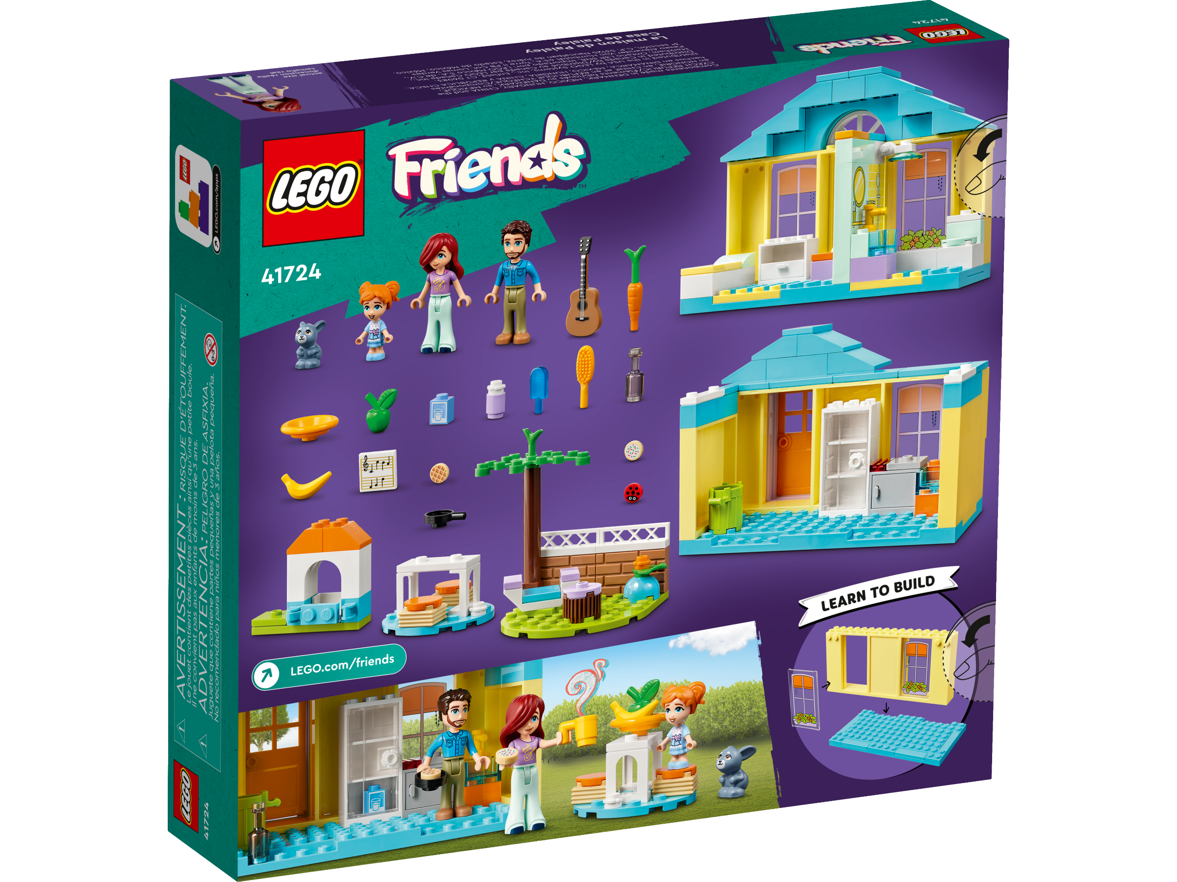 Young builders aged 4 have lots to discover in this LEGO® Friends Paisley’s House (41724) set. The top floor includes a bedroom and bathroom and can be removed, making it easy to explore the kitchen below. There are accessories for role play, including snacks and fruit to eat at the outdoor table, plus a can for recycling. In the yard, there is a cozy corner where Paisley plays the guitar and writes music while keeping her pet bunny company. There’s even a carrot for the rabbit to snack on.