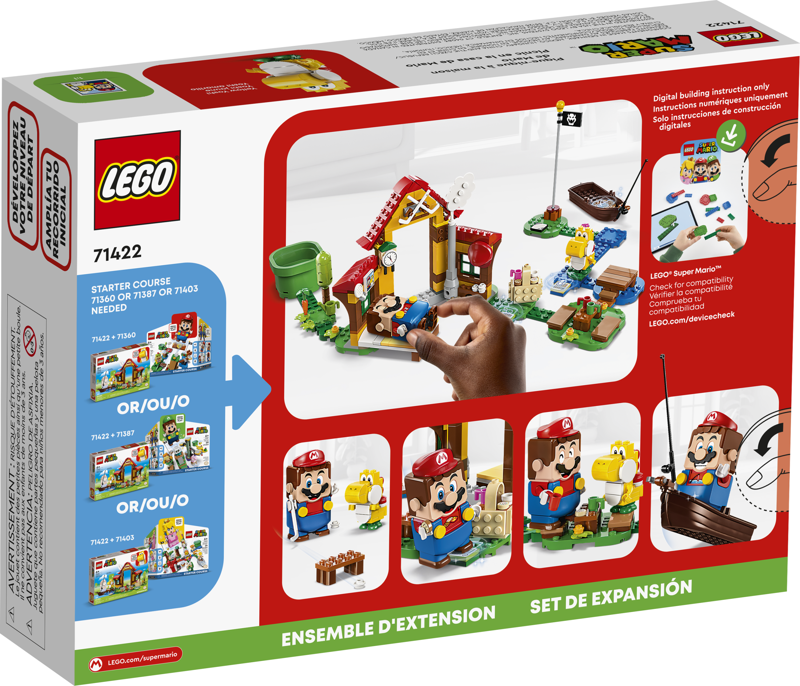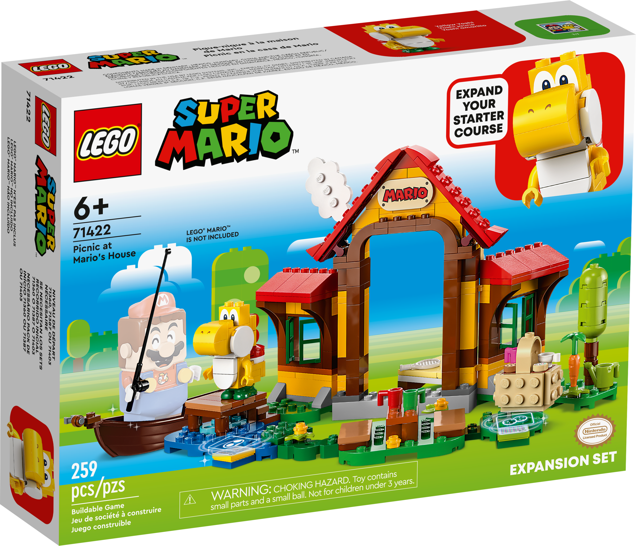 Kids can create a fun-packed level with this cool LEGO® Super Mario™ Picnic at Mario’s House Expansion Set (71422). The detailed brick-built house and garden offer rich role-play options and ways for players to earn digital coins with their interactive LEGO® Mario™, LEGO® Luigi™ or LEGO® Peach™ figures (not included). Say “Hi” to the Yellow Yoshi, sleep on the bed, ‘eat’ cookies from the picnic basket, ‘water’ the vegetables in the garden, play hockey or go fishing in the boat. Note: an interactive set (71439, 71440 and 71441, sold separately) is required for interactive play.