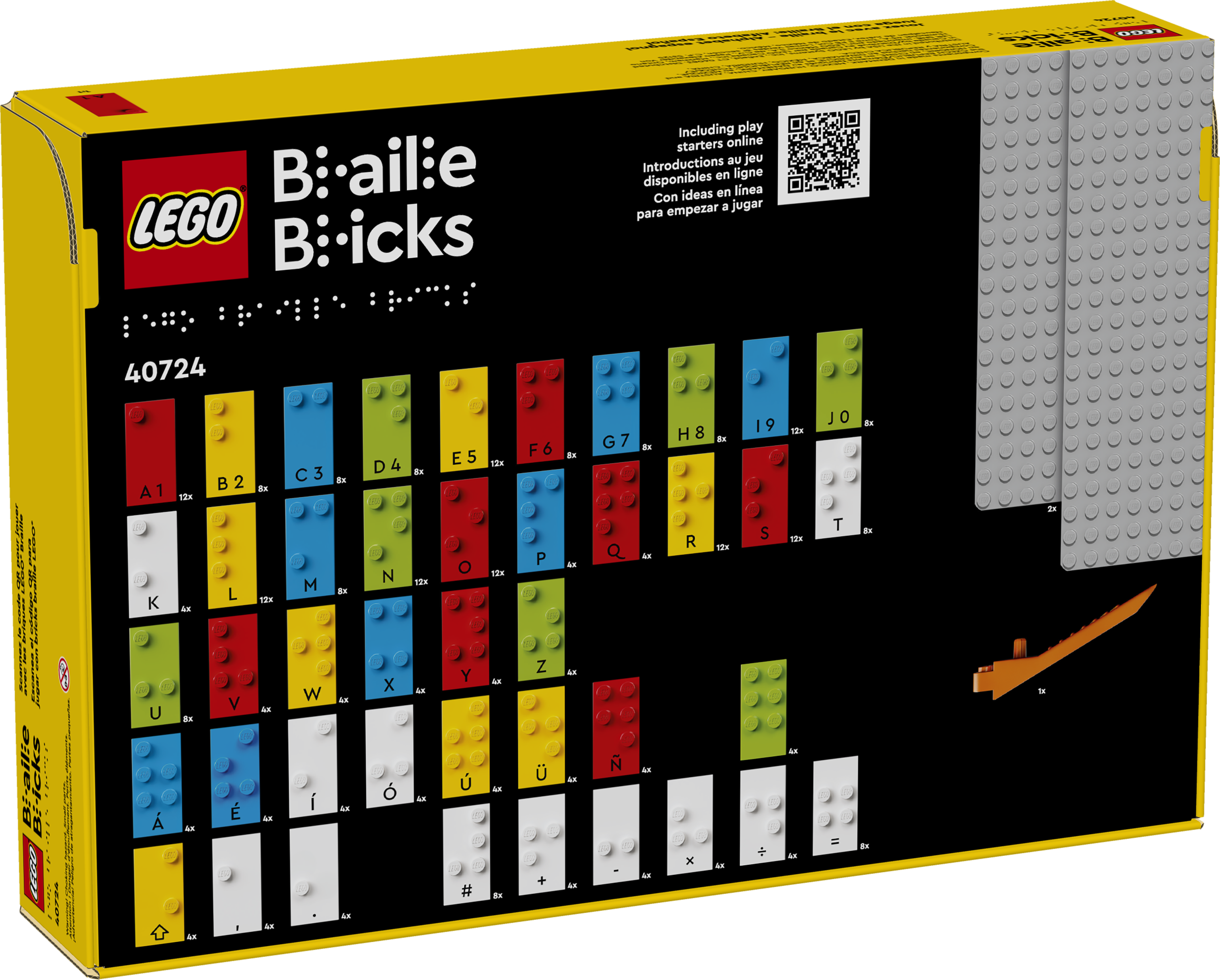 The LEGO® Play with Braille – Spanish Alphabet (40724) set contains 287 LEGO braille bricks, including letters from the Spanish alphabet, plus numbers, special signs and base plates. A complementary educational tool for visually impaired kids aged 6 and their loved ones, it aids learning through play. For a positive introduction to the Play with Braille experience, play starters are available on LEGO.com to help learners understand the brick system and how the bricks link to the braille code characters.
