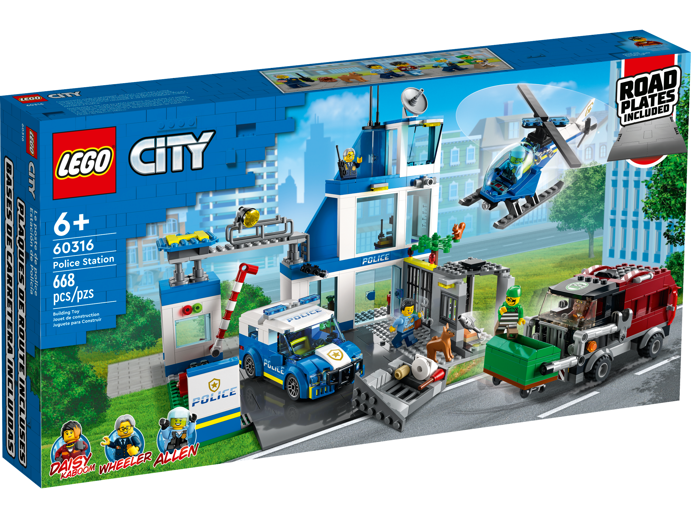 This 3-level LEGO® City Police Station (60316) toy is packed with inspiring details, including a jail with a breakout function, a crooks’ exercise yard and a dog training area. Kids also get a police car, helicopter and a crook’s customized garbage truck, plus a Road Plate for connection to other playsets. Just add the 5 minifigures, including 3 LEGO City Adventures TV series characters, and let the play begin.
