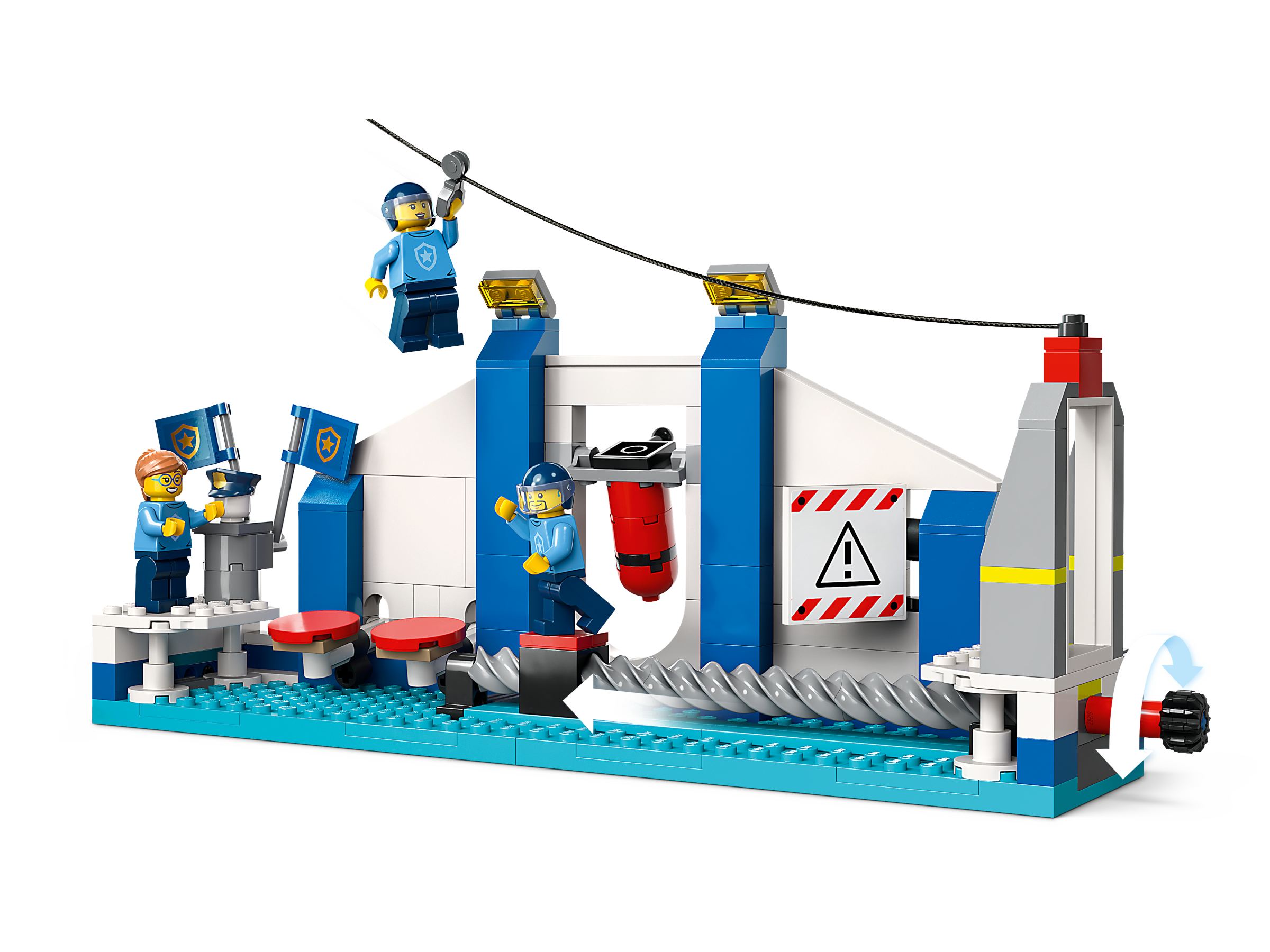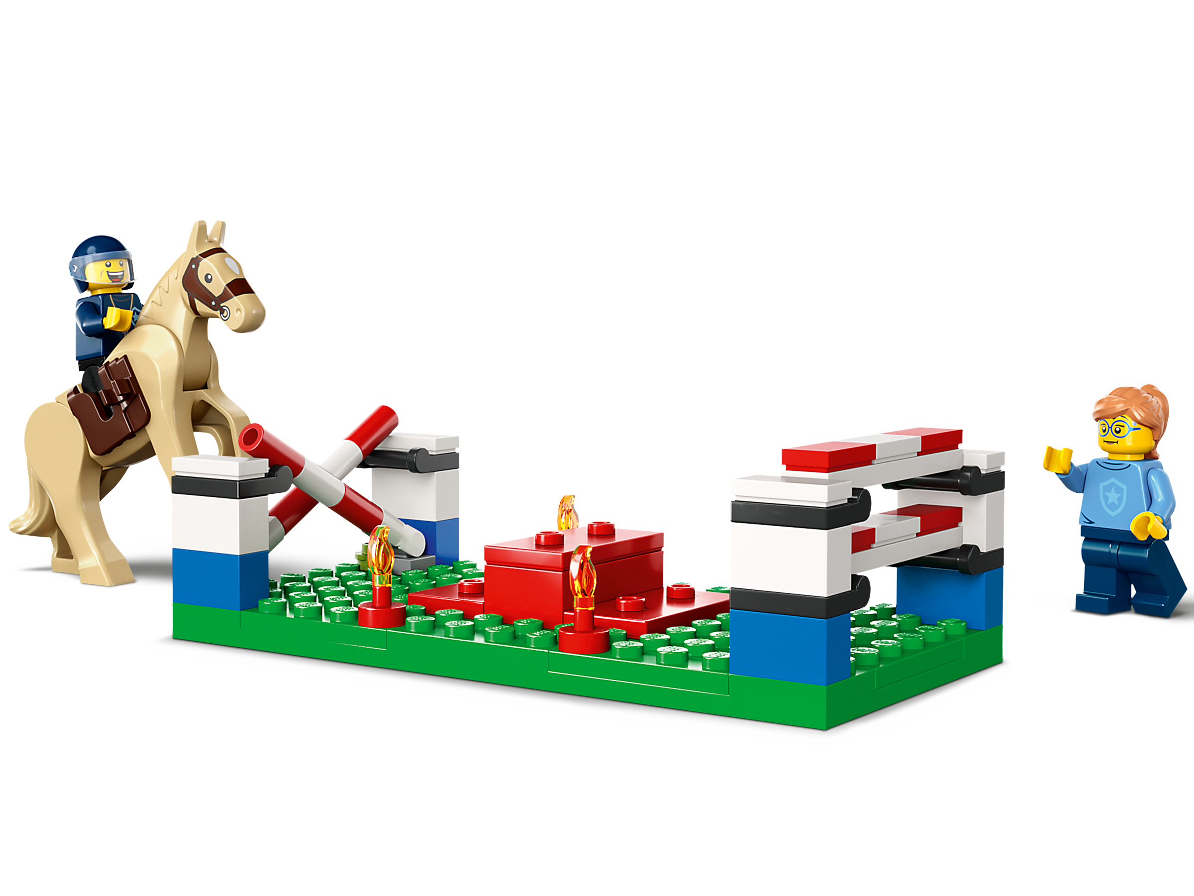 The LEGO® City Police Training Academy (60372) set features a modular multi-room police station and an outdoor obstacle course with fun facilities, including a toy climbing wall, monkey bars and a zip line. It also includes a steerable ATV, 6 minifigures and a horse figure.