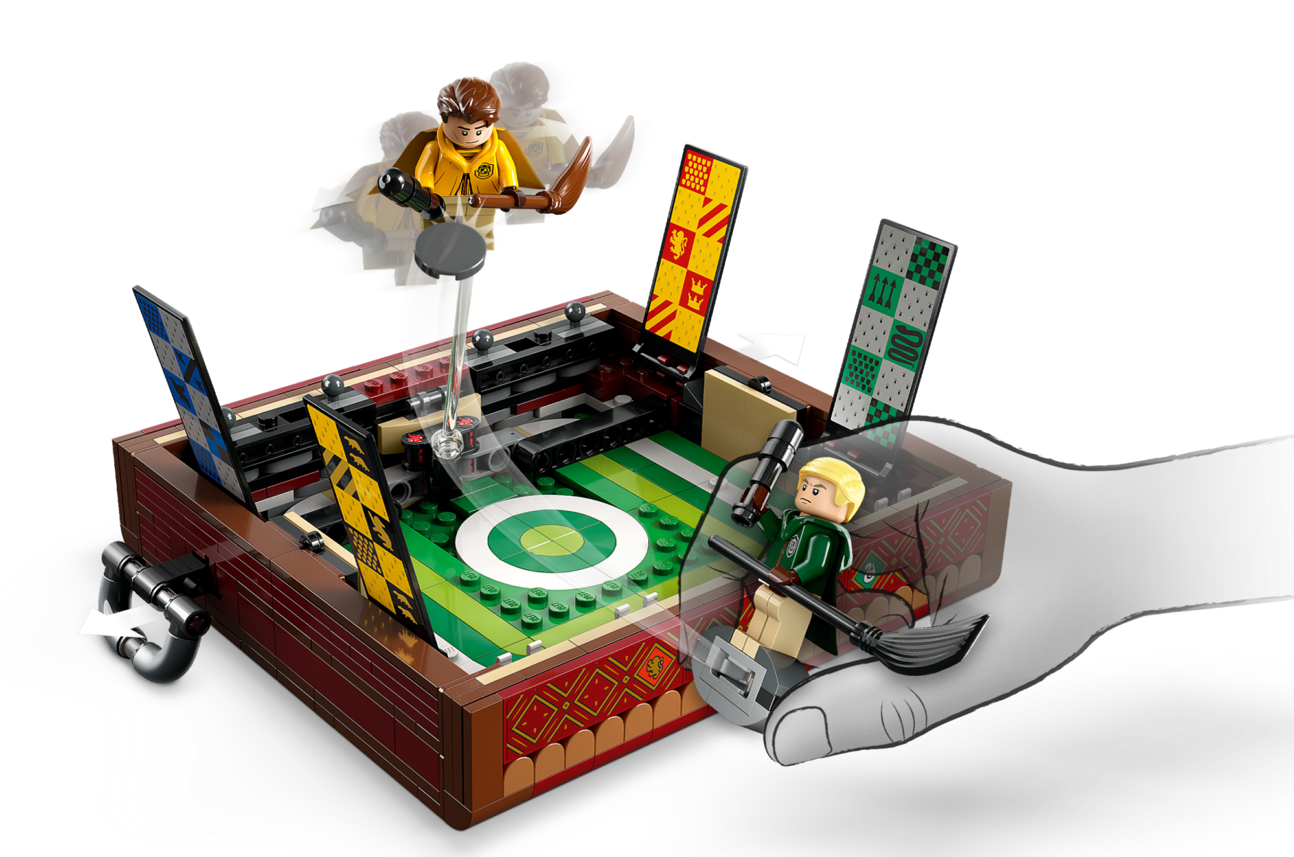 Kid will love to build this magical LEGO® Harry Potter™ Quidditch™ Trunk toy (76416), which unlocks to reveal a Quidditch playing field, Hogwarts™ house banners and everything needed to play solo or 2-player Quidditch games.