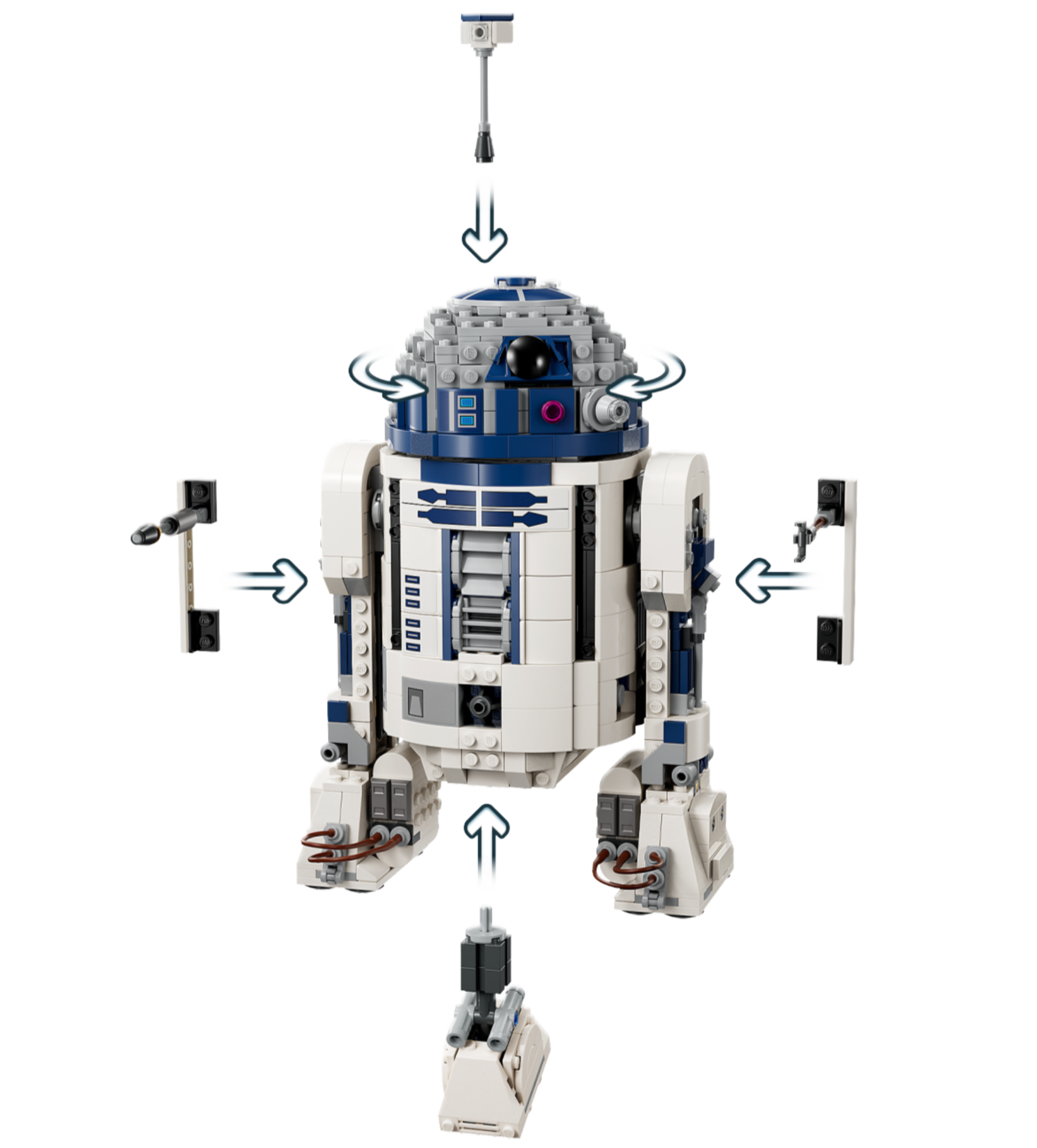 Let kids build their affection for the most lovable droid in the Star Wars™ galaxy with this LEGO® brick-built R2-D2 toy figure (75379). This playful buildable display toy model for boys and girls aged 10 and over is packed with authentic features so they can play out classic moments and original fantasy stories. Features include R2-D2’s 360-degree rotating head, an attachable third leg, attachable periscope and attachable tools.