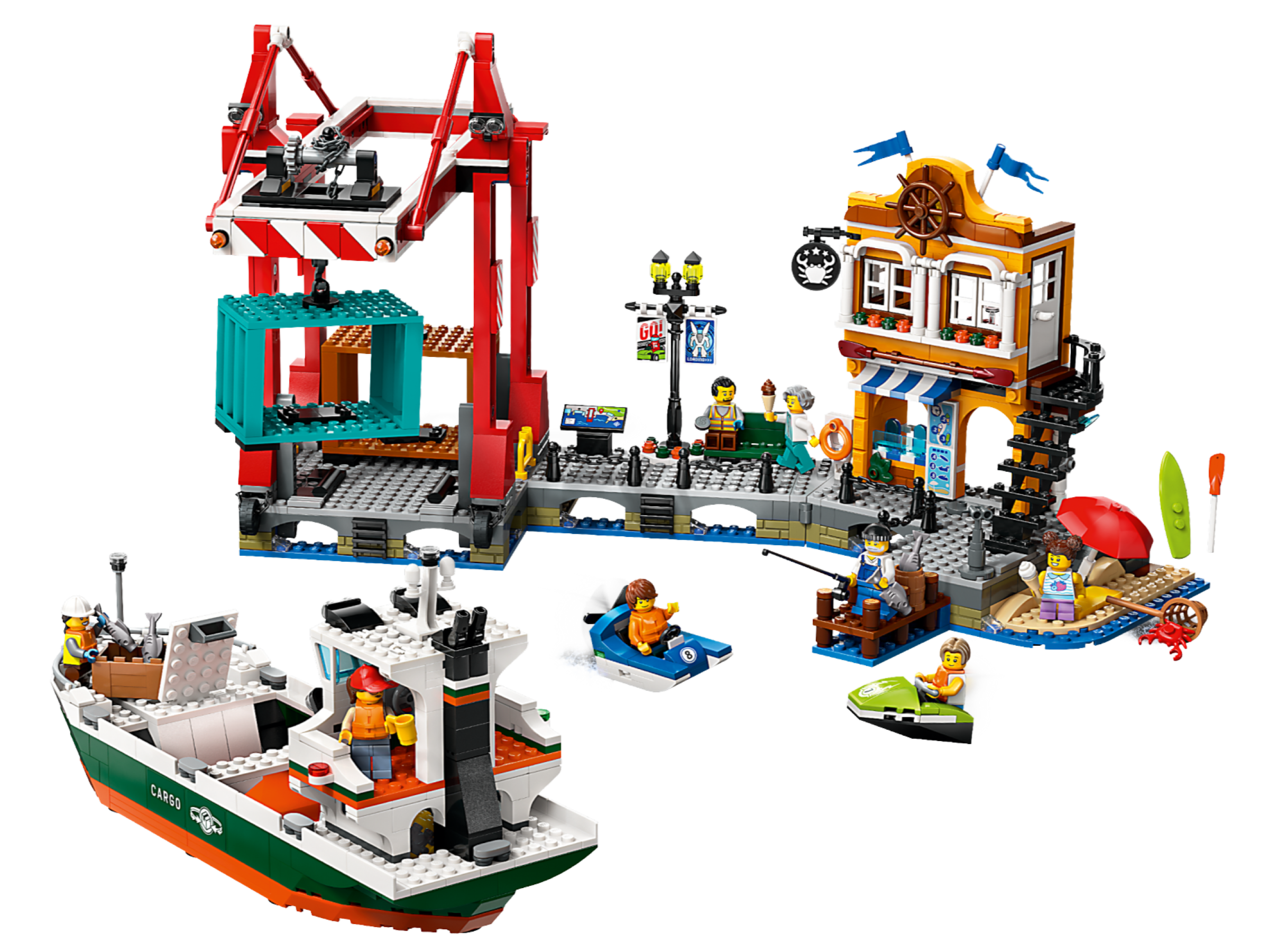 Bring a cozy quayside vibe to kids’ play with this LEGO® City Seaside Harbor with Cargo Ship toy building set (60422) for ages 8 and up. Kids can use the toy crane to lift containers from the LEGO ship and enjoy the harbor’s tourist area complete with a store, seafood restaurant and beach. The set also includes a smaller toy boat and a water scooter, plus 8 minifigures for role play and storytelling.