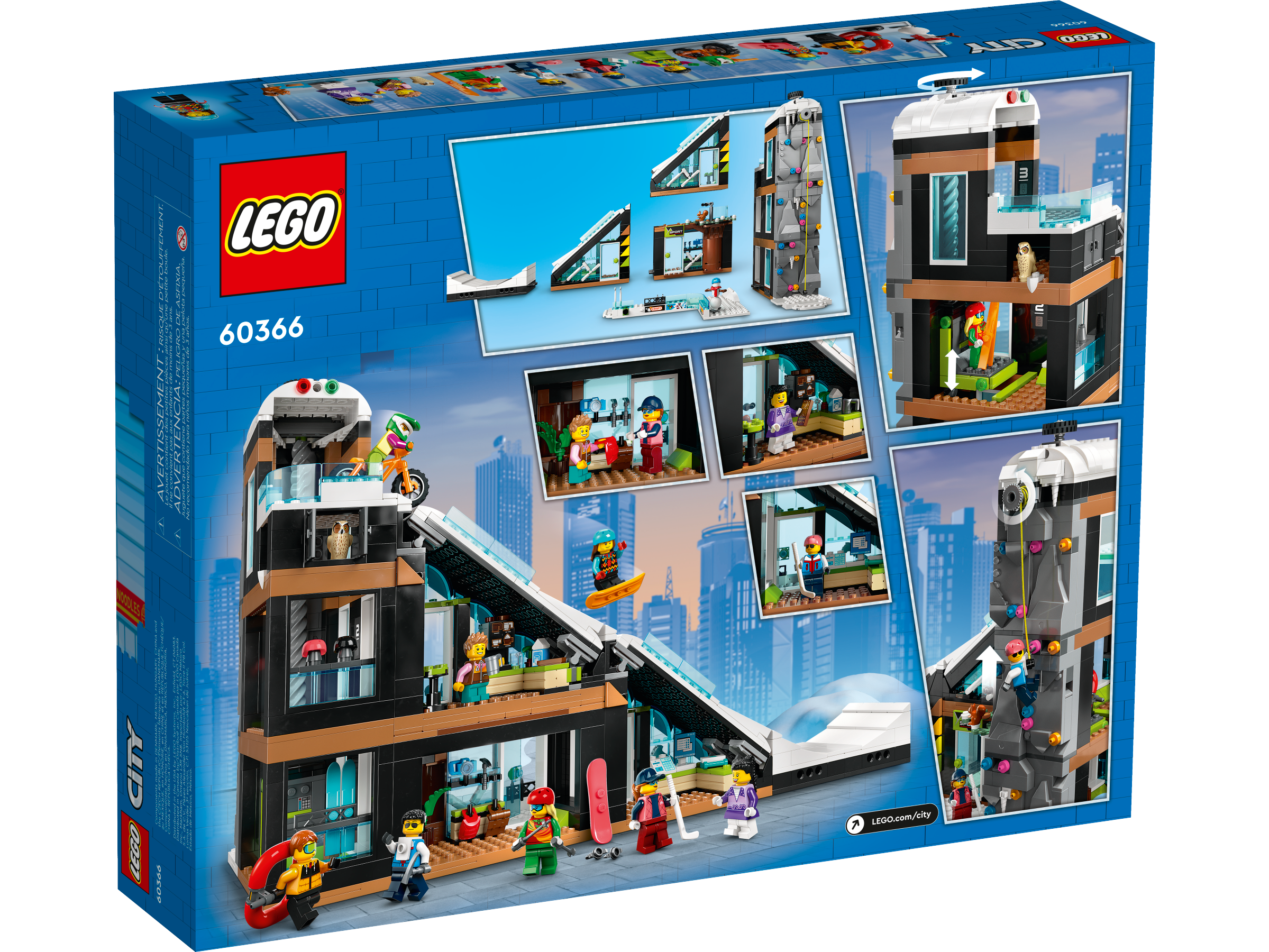 Bring the thrill of the slopes home with this LEGO® City Ski and Climbing Center (60366) playset. The 3-level building houses a winter-sports store, café and a working elevator that delivers skiers to the top of a piste. The center also features a climbing wall and an outdoor area for fun winter activities. Just add the 8 minifigures, squirrel and owl figures and the buildable snowman for endless winter fun.