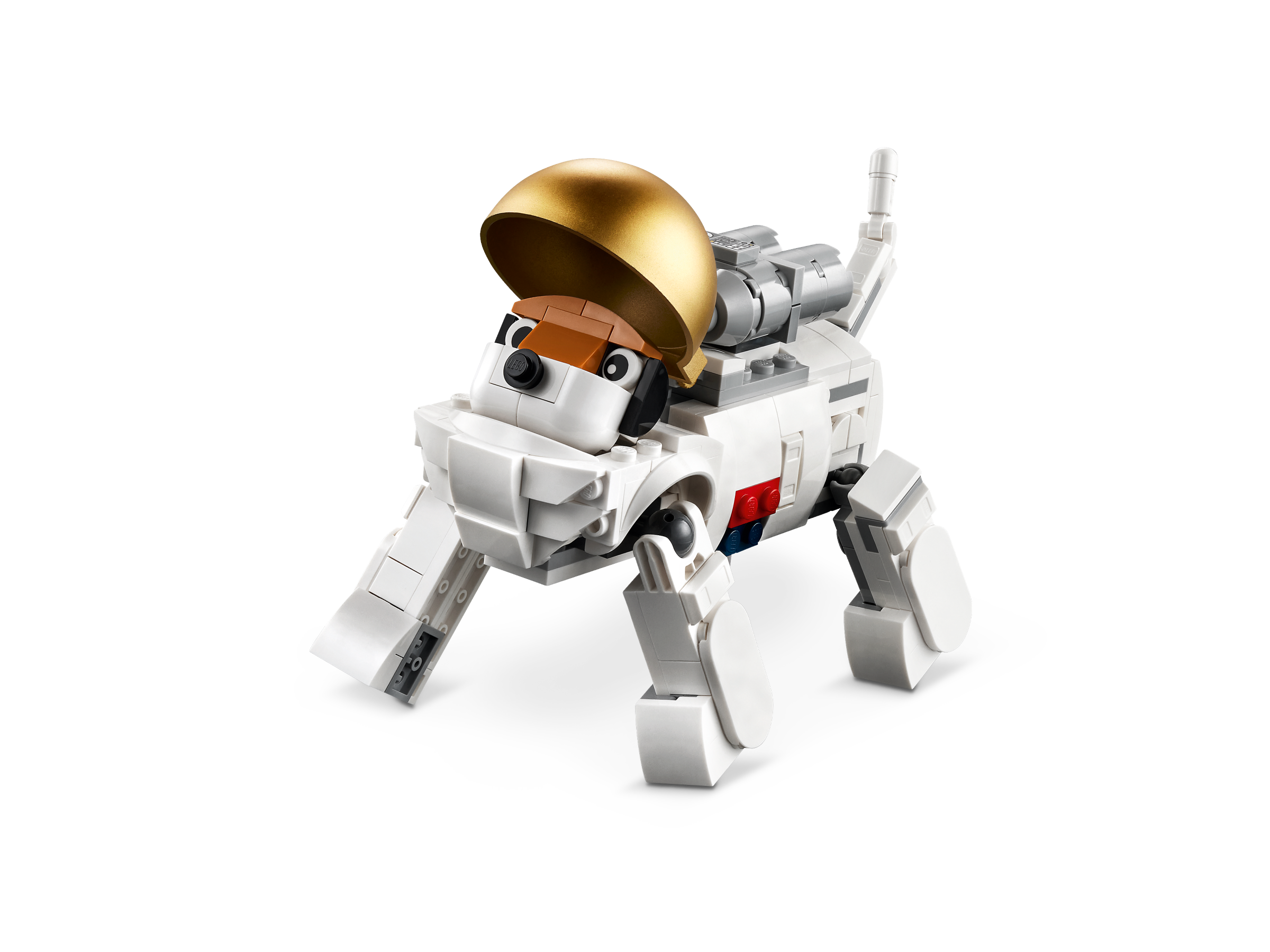 Boys and girls can build 3 different space playsets: a posable space astronaut, a futuristic space dog with posable legs and tail, or a space viper jet with a se at for a minifigure (not included) to pilot it. All 3 models make great space-themed creative gifts and come with stands for display.