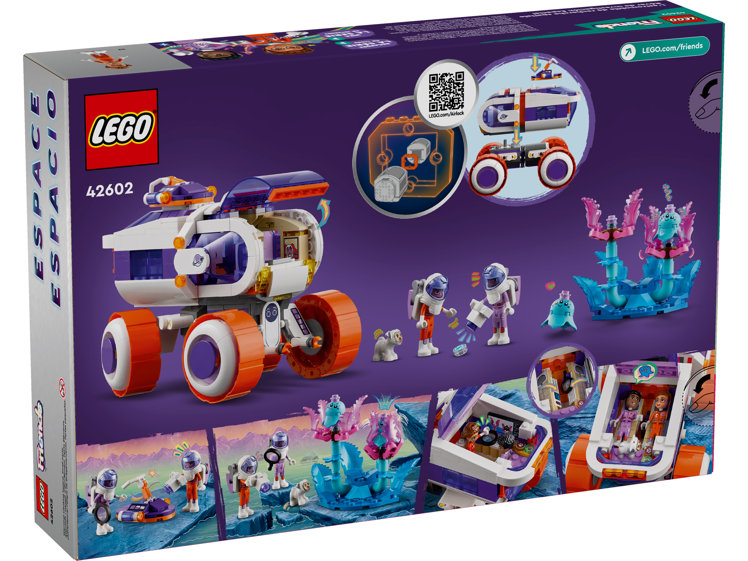 This kids’ vehicle toy lets girls and boys aged 8 create their own extraterrestrial stories for the 2 friends and their astronaut dog. The LEGO® Friends Space Research Rover (42602) toy tells the story of Olivia and William, who are exploring an uncharted planet. They’re searching for signs of alien life and the rover toy with wheels has everything they need, including a toy science lab and hover scooter.