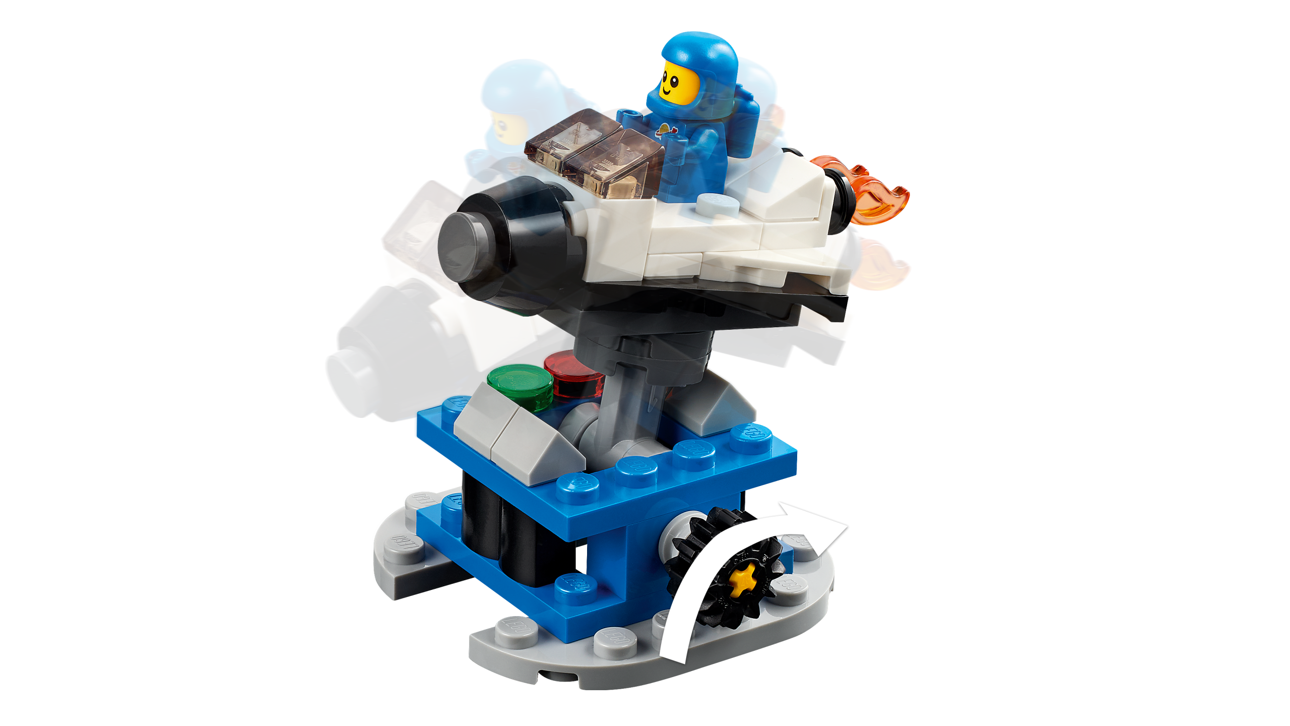 The perfect space-themed gift, kids can choose between 3 different amusement park rides to build in this unique LEGO Creator 3in1 construction set. They can create the Space Roller Coaster, then rebuild it into a drop tower with an elevator or a spinning space carousel. Each set includes a light brick feature that illuminates when activated.