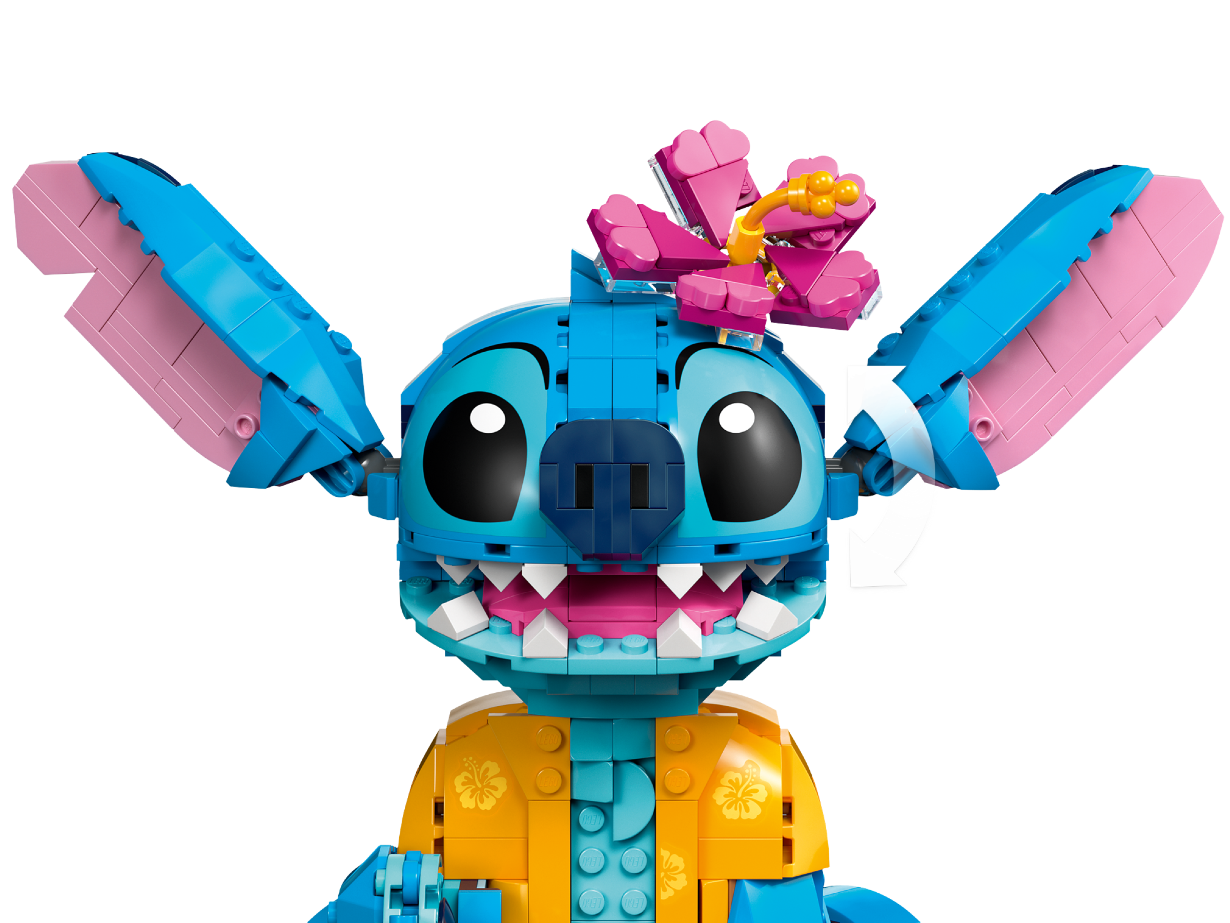 Appeal to older kids and Lilo and Stitch fans aged 9 with this LEGO® ǀ Disney Stitch (43249) buildable play-and-display set, featuring a Stitch character. The incorrigible extraterrestrial from the hit Disney movie, dressed in a Hawaiian shirt, has movable ears and a turning head, a buildable ice-cream cone that the character can hold and a buildable flower that can be added or removed.
