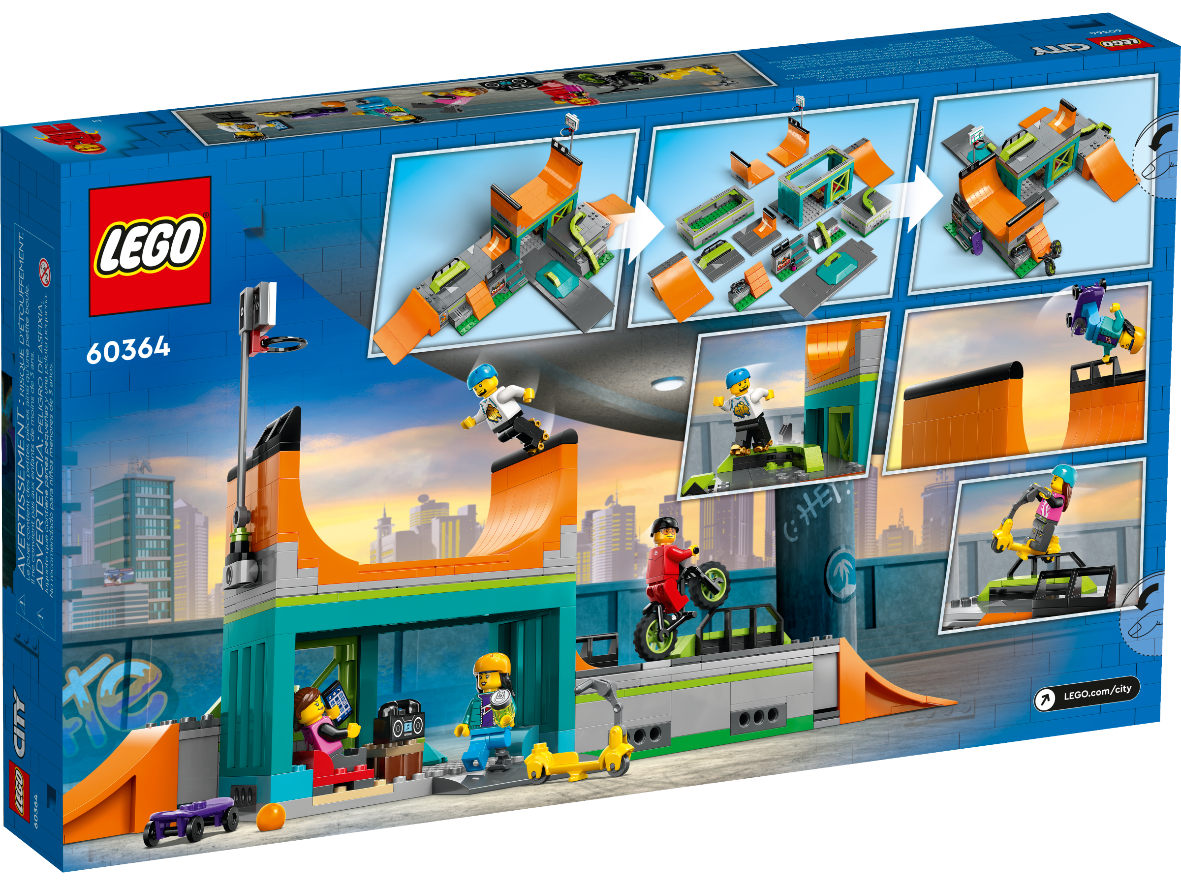 Kids and skate fans aged 6 will love this LEGO® City Street Skate Park set (60364). It’s packed with inspiration for imaginative play and comes with combinable ramp modules for different park configurations. The set also includes a toy BMX bike, skateboard, scooter, in-line skates, 4 skater minifigures and a LEGO Road Plate for connection to other sets from the LEGO City range.