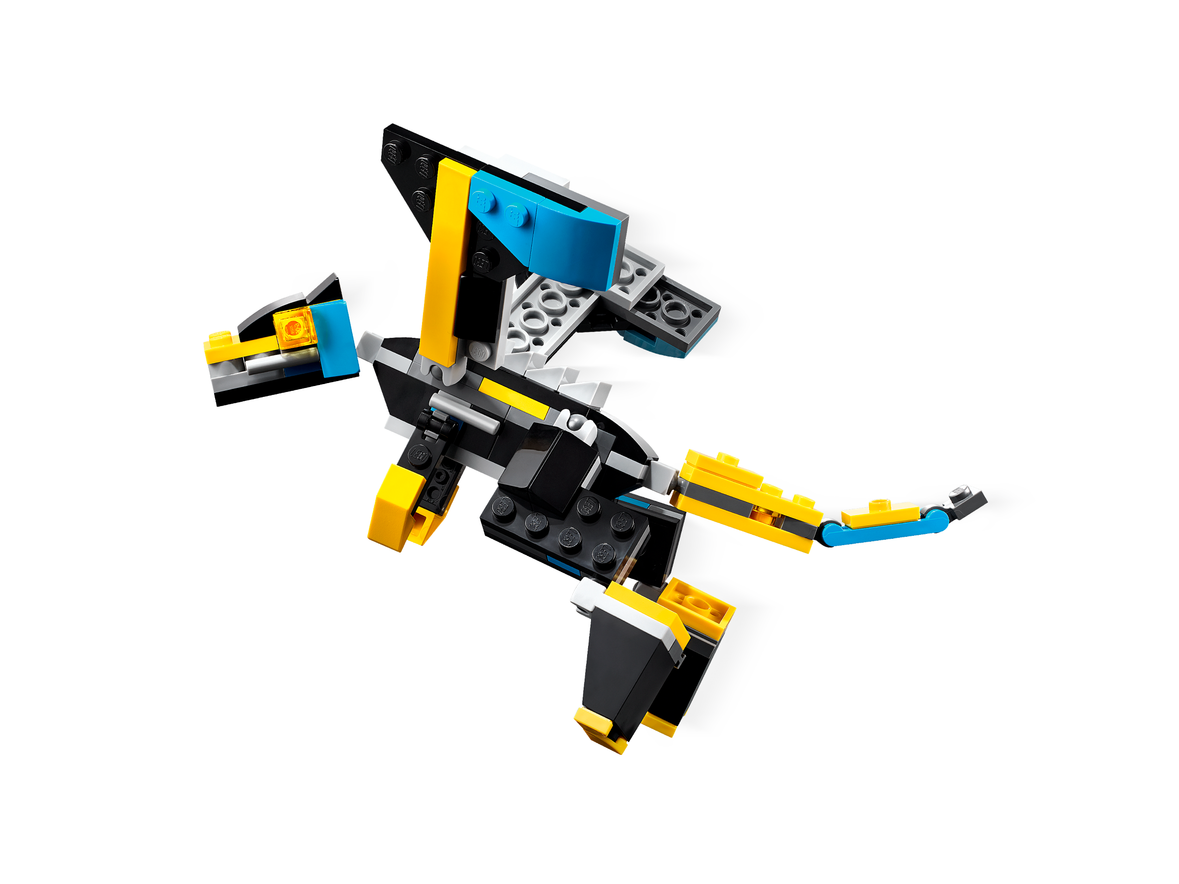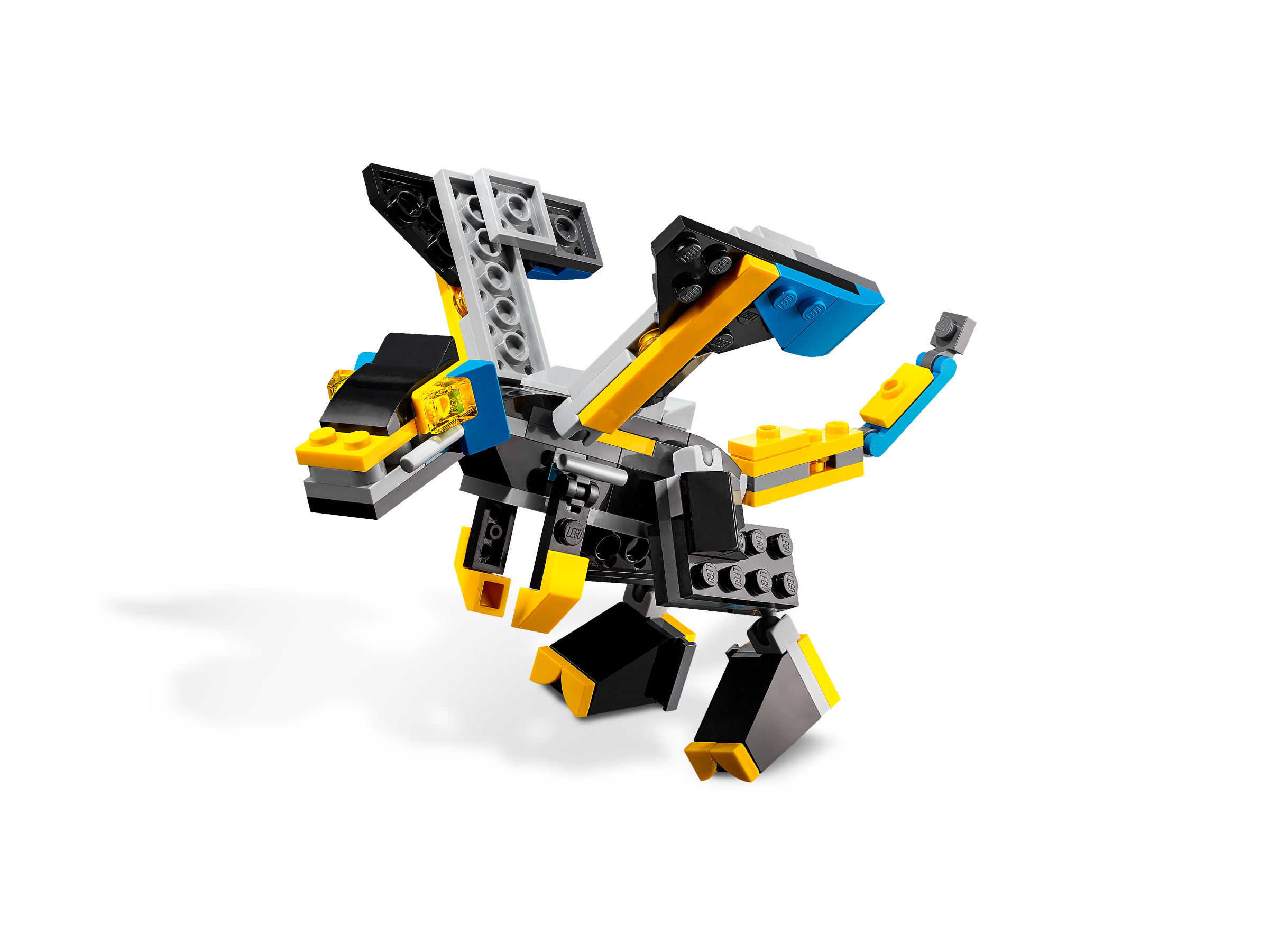 This LEGO Creator 3in1 building set provides 3 different playtime experiences for kids to savor. They can construct the posable Super Robot, which has a set of wings on the back, then rebuild it into a posable mecha dragon or a jet plane with adjustable wings.