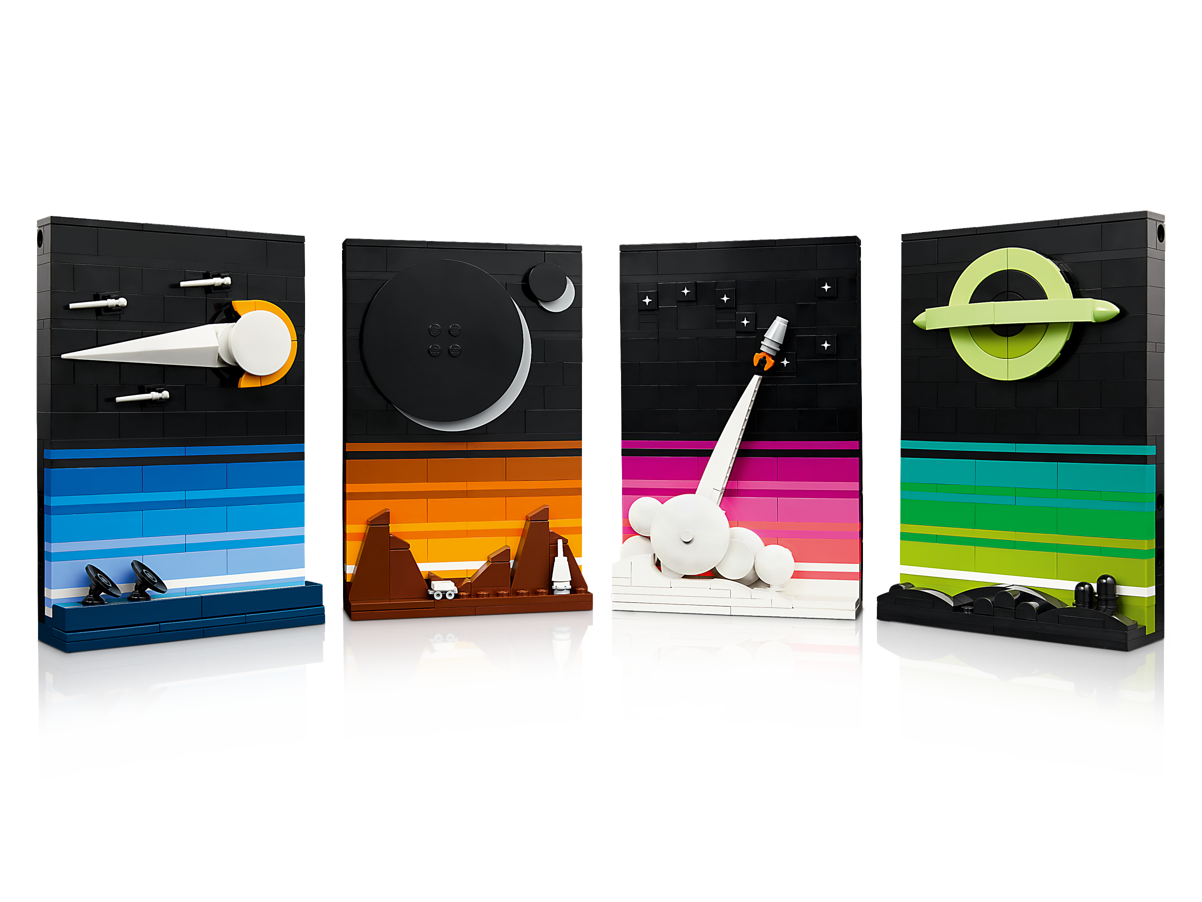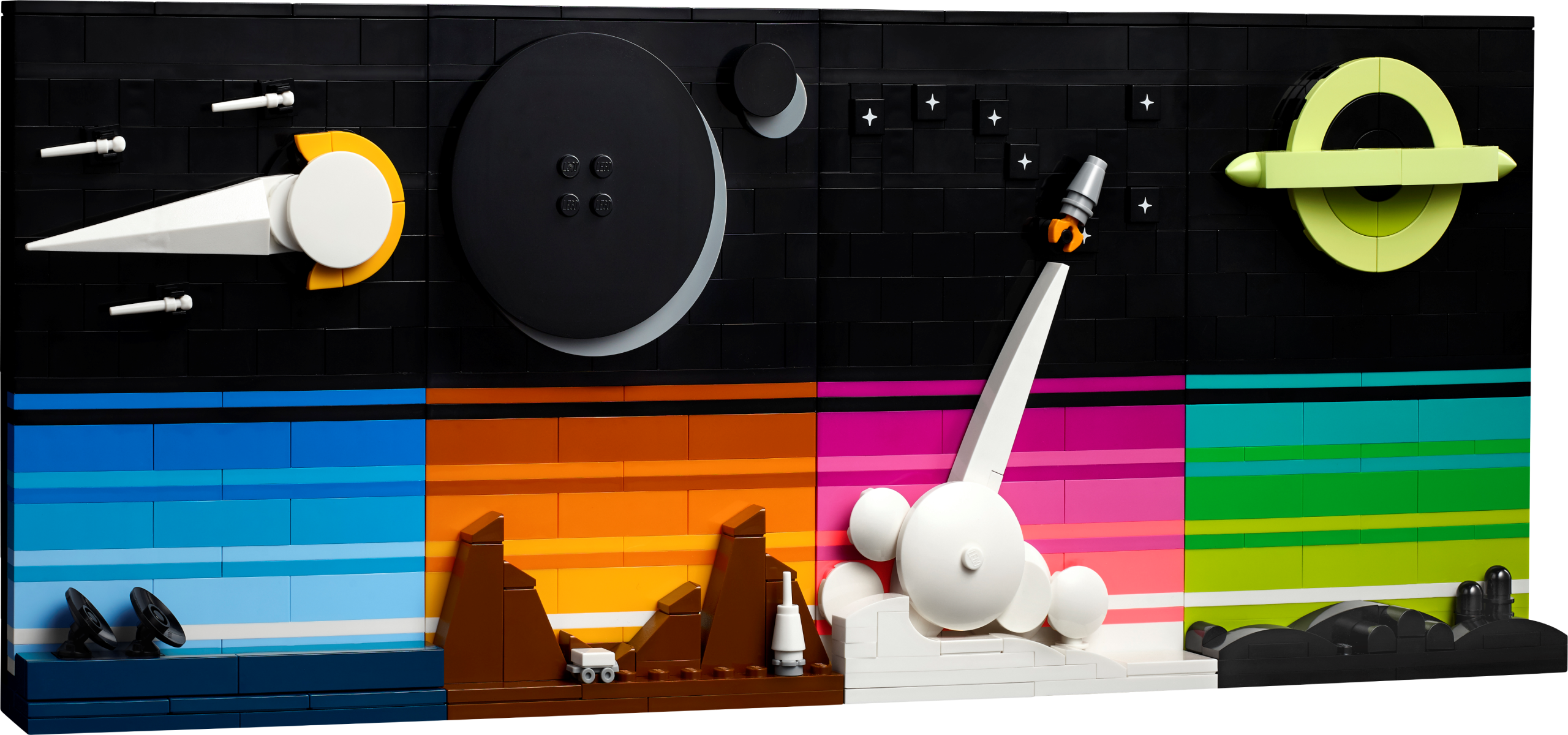 Turn off your thrusters and let your mind drift into space with this LEGO® Ideas Tales of the Space Age (21340) building set. It features 4 connectable brick-built 3D postcards, each depicting scenes inspired by 1980s sci-fi myths, films, books and posters. Create cool minimalist LEGO brick representations of an observatory for viewing comets and shooting stars, a moon base and lunar eclipse, a shuttle blasting through space, and a black hole.