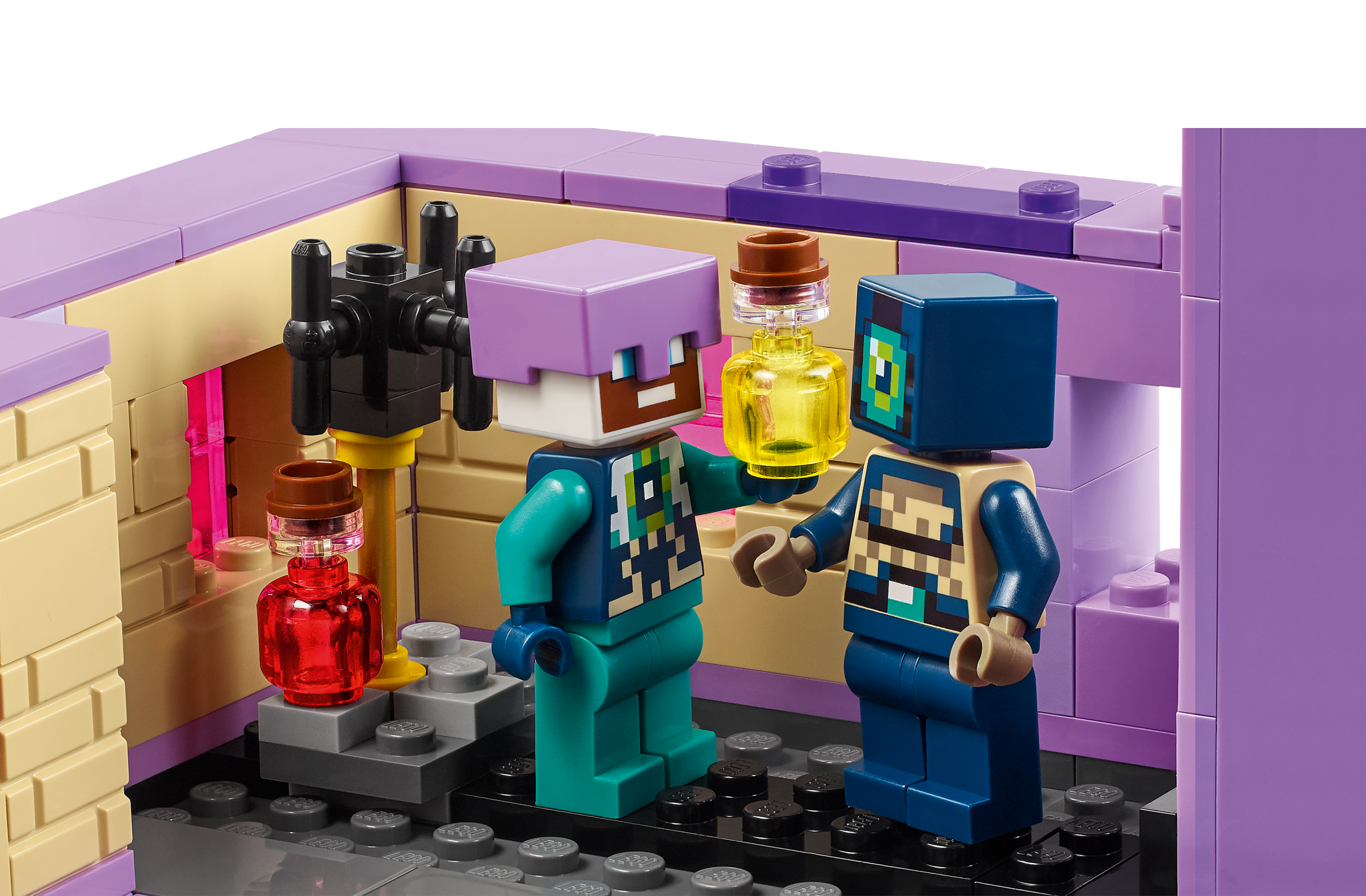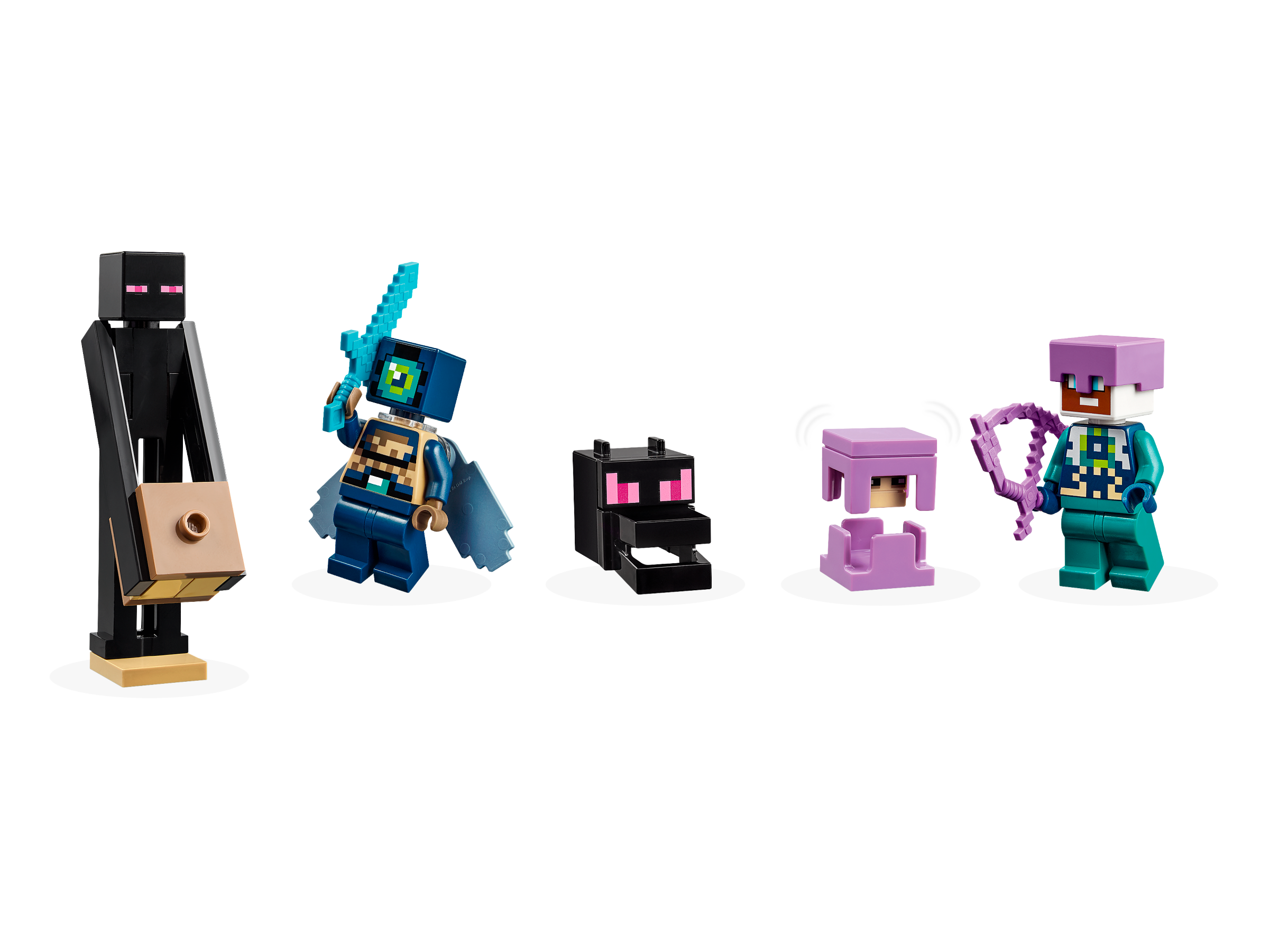 Players enter the perilous End biome, where they must battle the Ender Dragon. All the limbs of this fully-jointed Minecraft model are movable and adjustable. The End Ship has a fully equipped interior, accessed via a lift -off roof and opening sides. A dragon’s head at the ship’s bow can be removed and worn as a helmet. Inside, kids will find a brewing stand with health potions. Minecraft characters include an Ender Explorer with elytra wings and firework rocket, an Ender Knight, a Shulker and an Enderman. Accessories include the prized dragon’s egg. For added digital fun, builders can zoom in, rotate models in 3D and track their progress using the fun, intuitive LEGO® Builder app.