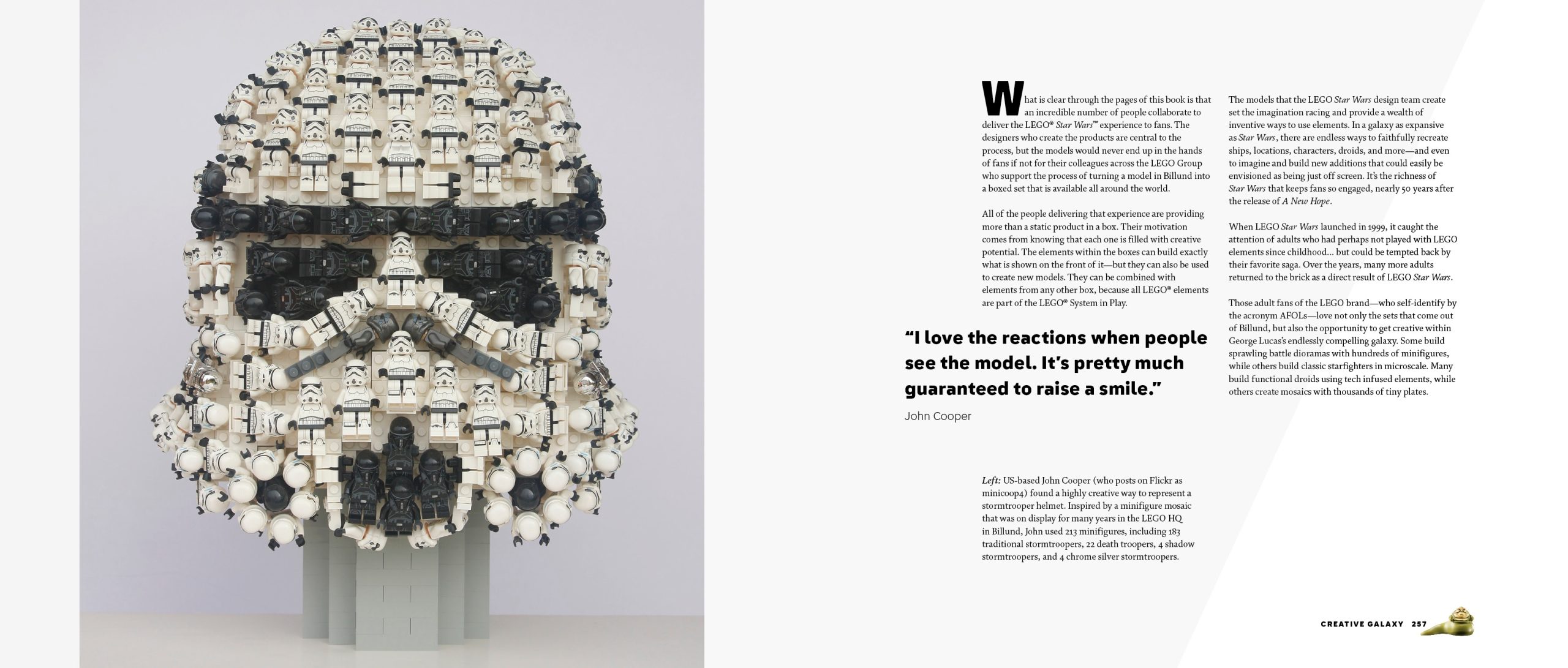 Celebrate the 25th anniversary of LEGO® Star Wars™ building sets with The Force of Creativity coffee-table book. The ultimate treat for yourself or a Star Wars gift for a fellow fan, this lavish 312-page illustrated book features interviews with more than 50 insiders at the LEGO Group and Lucasfilm. It tells the inside story of the ever-evolving LEGO Star Wars brand, from the creation of popular building sets to immersive real-world experiences, video games, animated storytelling and the fan community.
