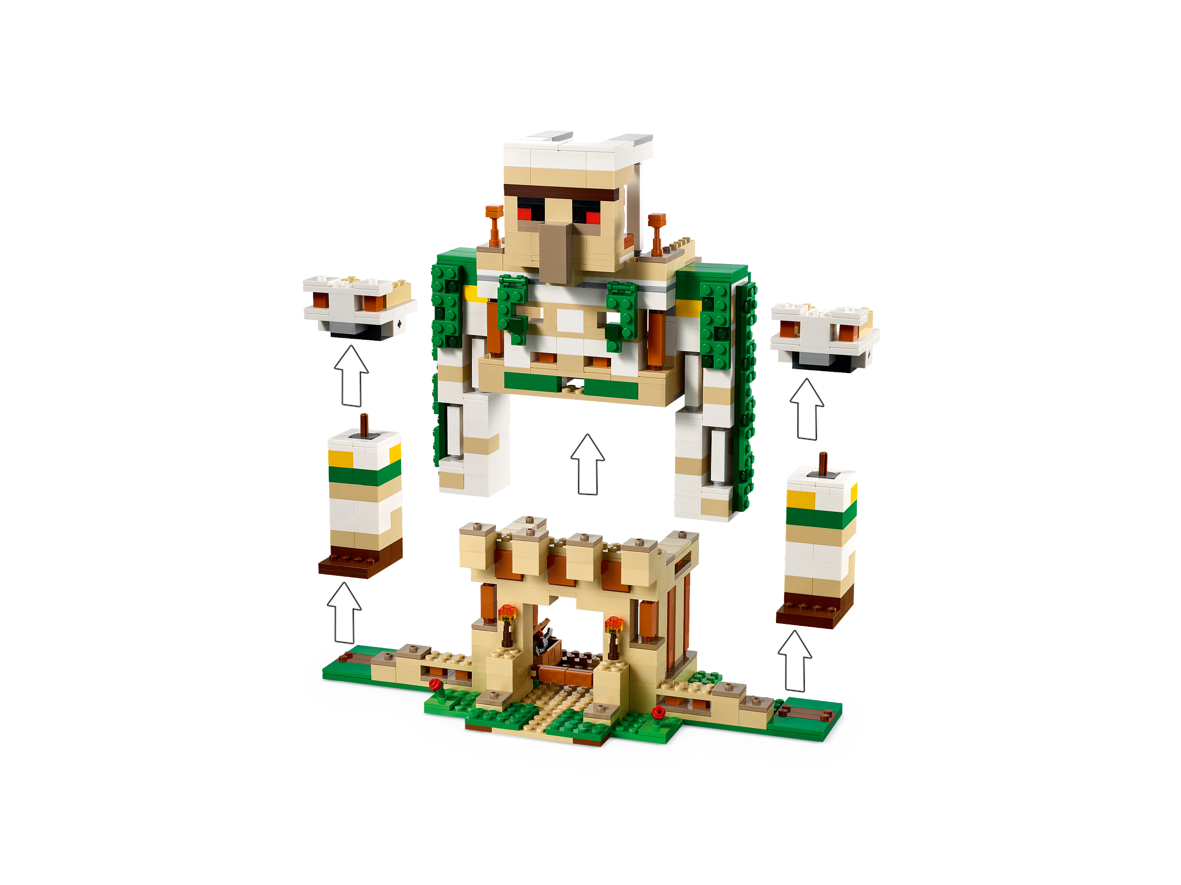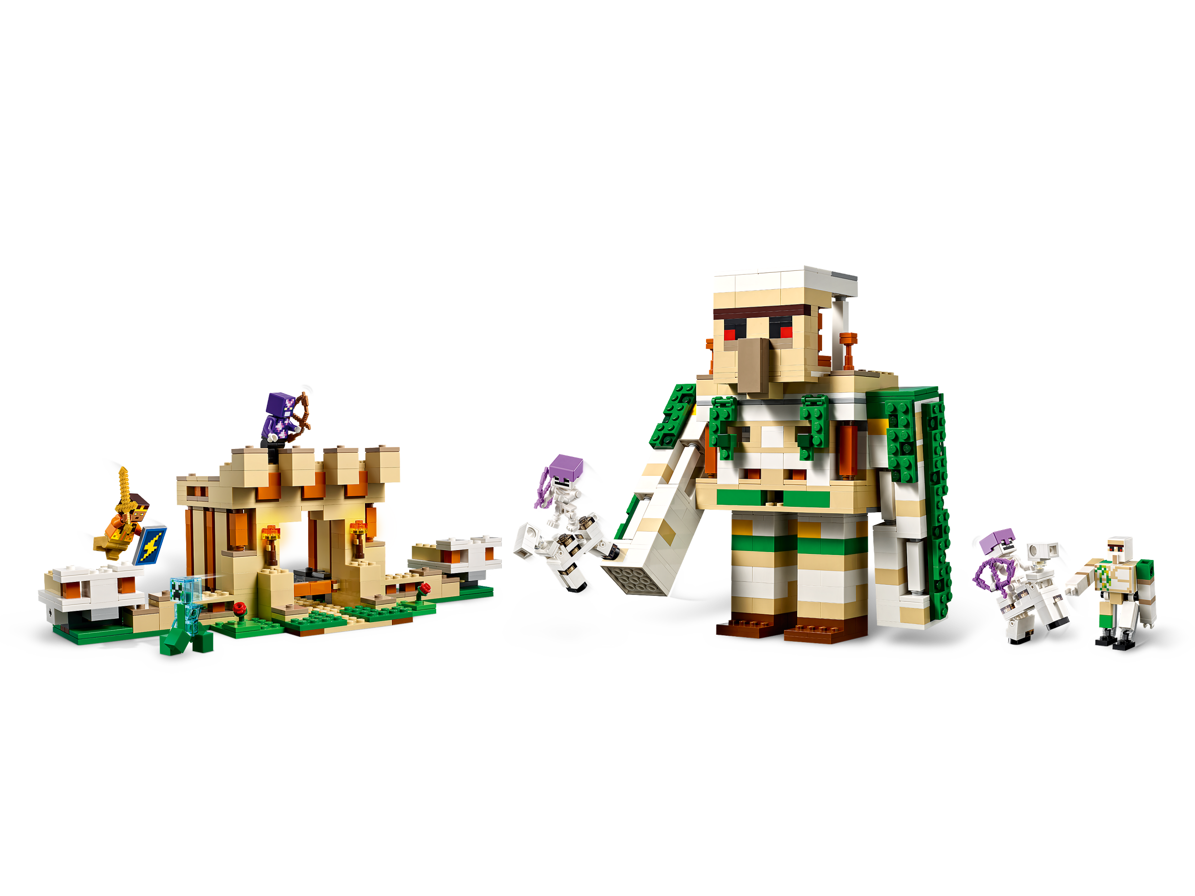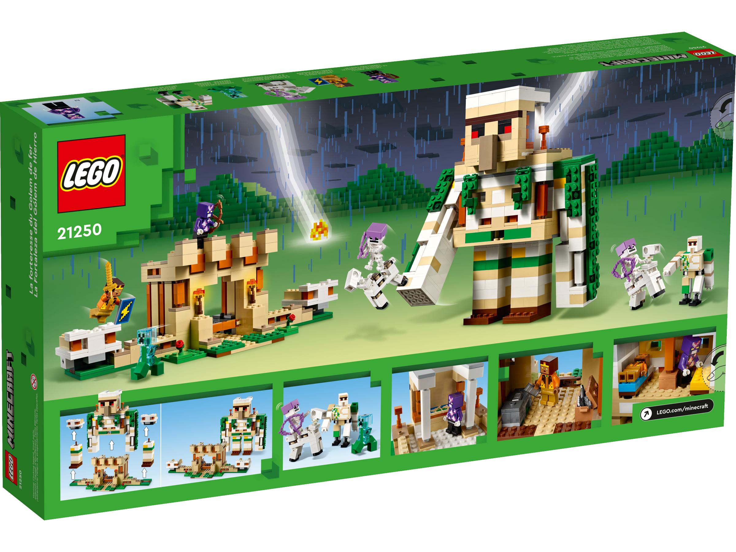 LEGO® Minecraft® The Iron Golem Fortress (21250) has a hidden surprise: the impressive structure transforms into towering giant, providing awesome build-play-and-display action for Minecraft players aged 9 and up.