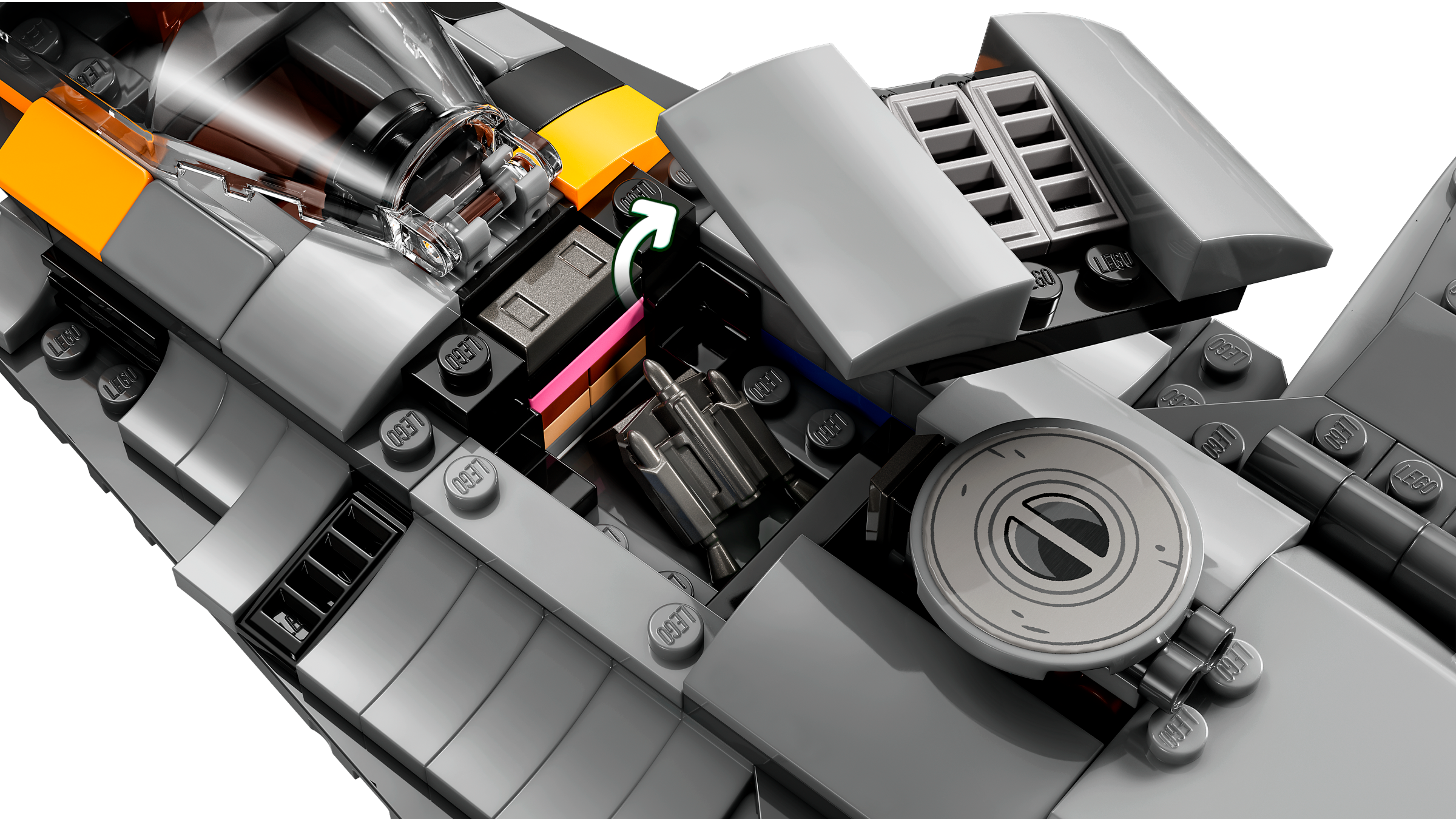 Tatooine tales from Star Wars: The Book of Boba Fett come to life for young builders with this LEGO® brick model of The Mandalorian’s N-1 Starfighter (75325). It has a minifigure cockpit, passenger space for Grogu, a cargo compartment, a spring-loaded shooter and realistic details. A fun gift for kids aged 9 and up, this building toy features LEGO minifigures of The Mandalorian and Peli Motto, plus LEGO figures of Grogu (affectionately known by fans as ‘Baby Yoda’) and a BD Droid to inspire creative role play.