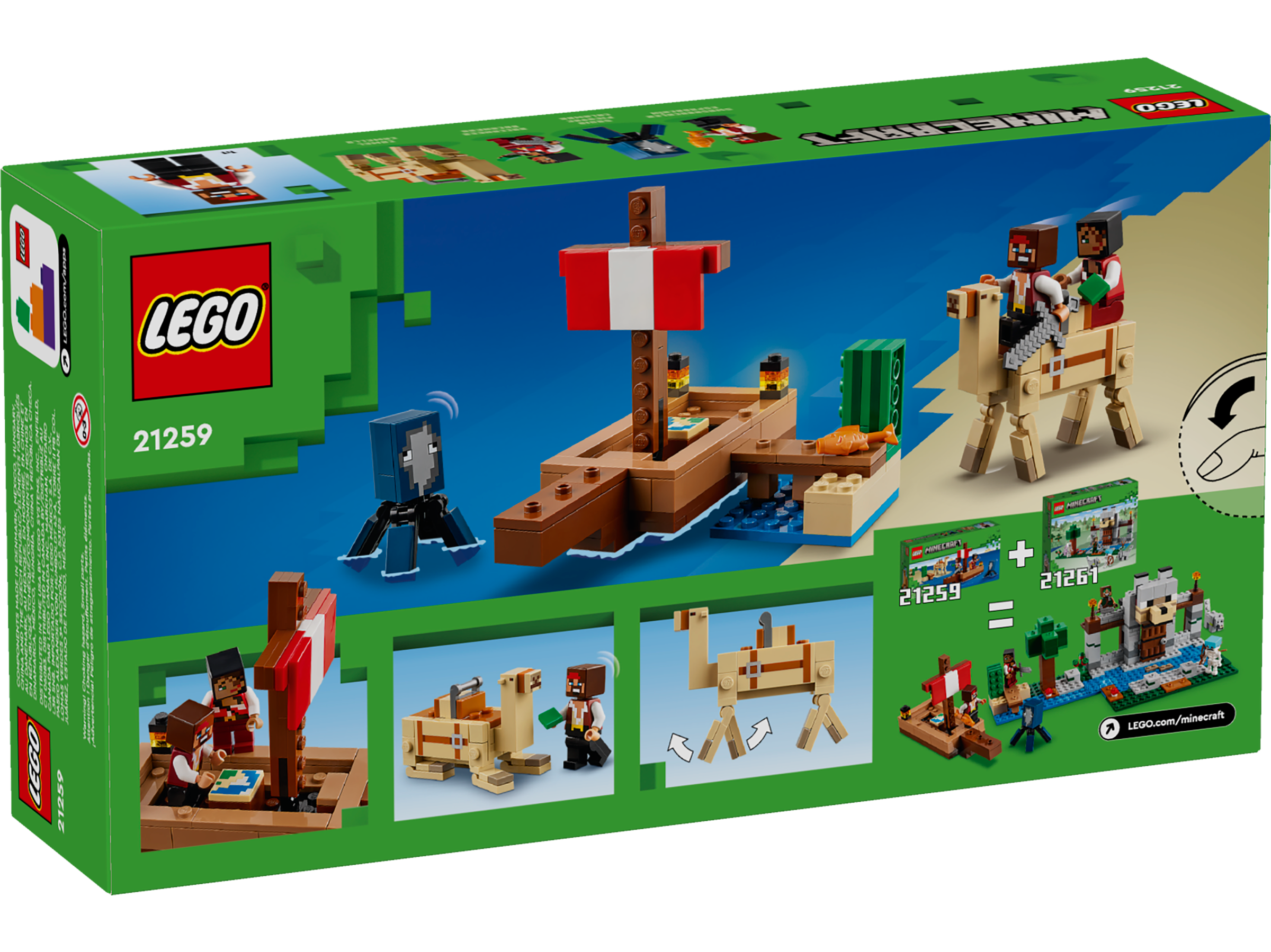 The Pirate Ship Voyage (21259) is a LEGO® Minecraft® pirate-figure adventure set that can be played with as a toy on its own or combined with other sets (sold separately) to create a bigger play experience. This kids’ pirate ship playset makes a versatile, hands-on video-game gift for Minecraft players and boys and girls aged 8 and up who like boat toys and building fun.