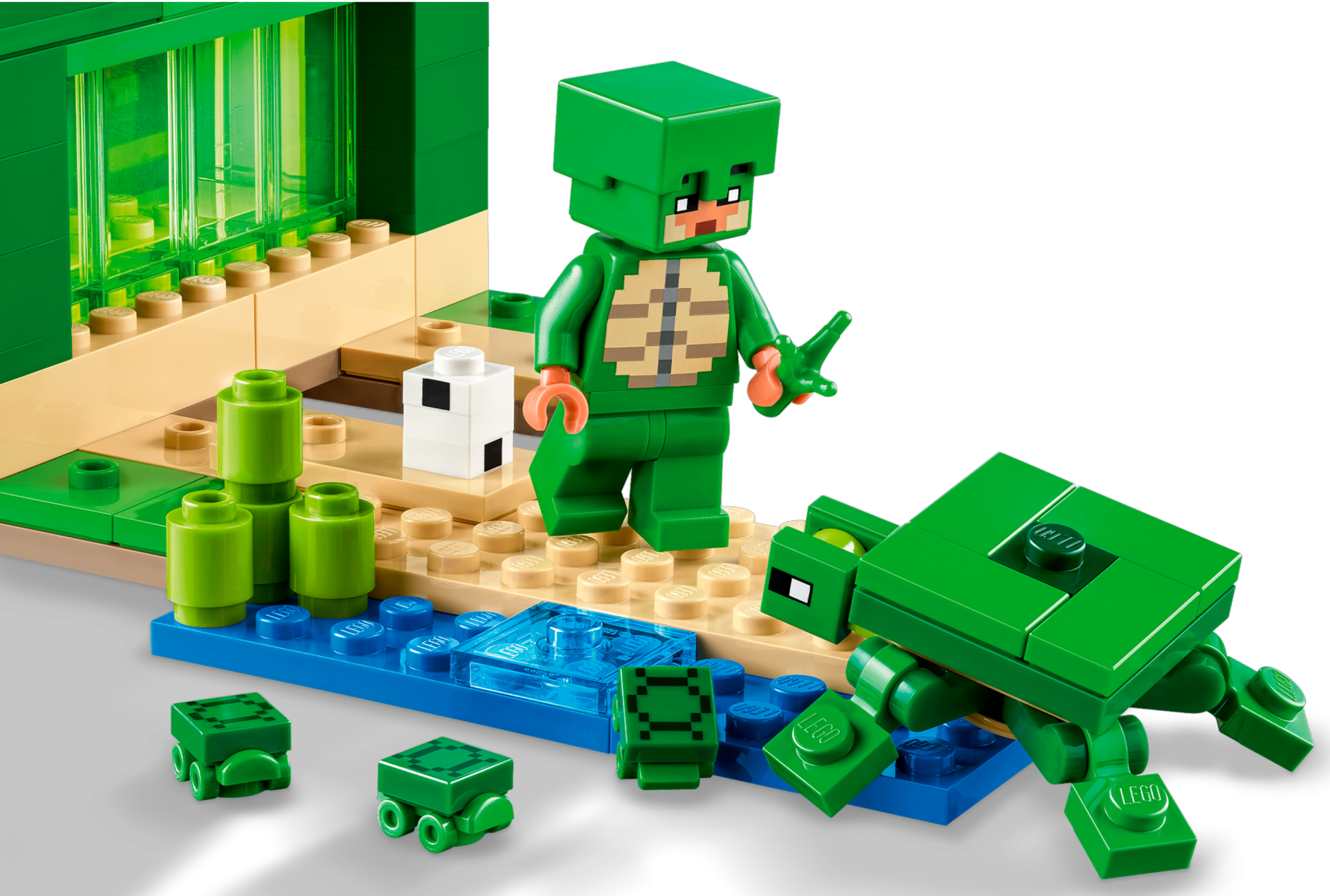 This model house shaped like a Minecraft® turtle is packed inside and out with Minecraft action and animal fun. With 3 iconic characters and a cool structure to build, the LEGO® Minecraft The Turtle Beach House (21254) set is a great gift idea for kids and Minecraft players aged 8 and up.