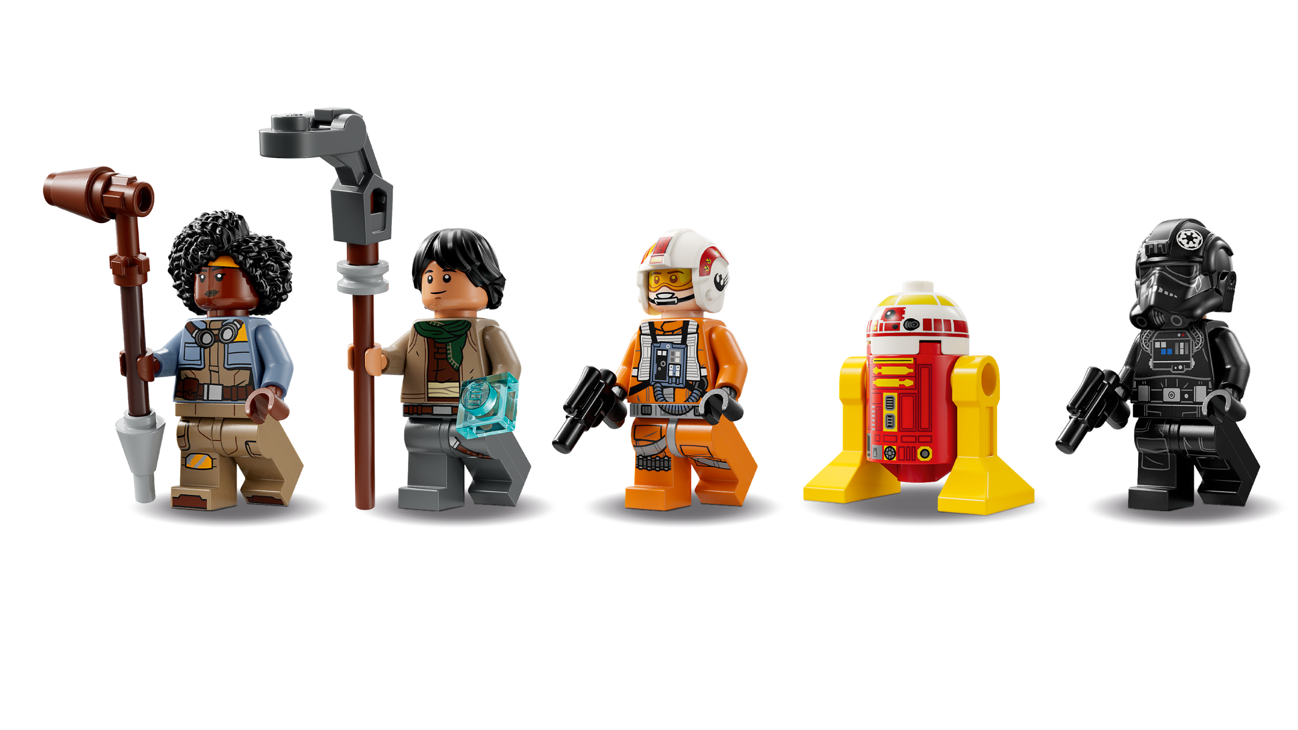 The buildable adventure playset also includes 4 LEGO Star Wars minifigures with accessories, plus an L3-G0 droid LEGO figure that fits behind the X-wing cockpit.