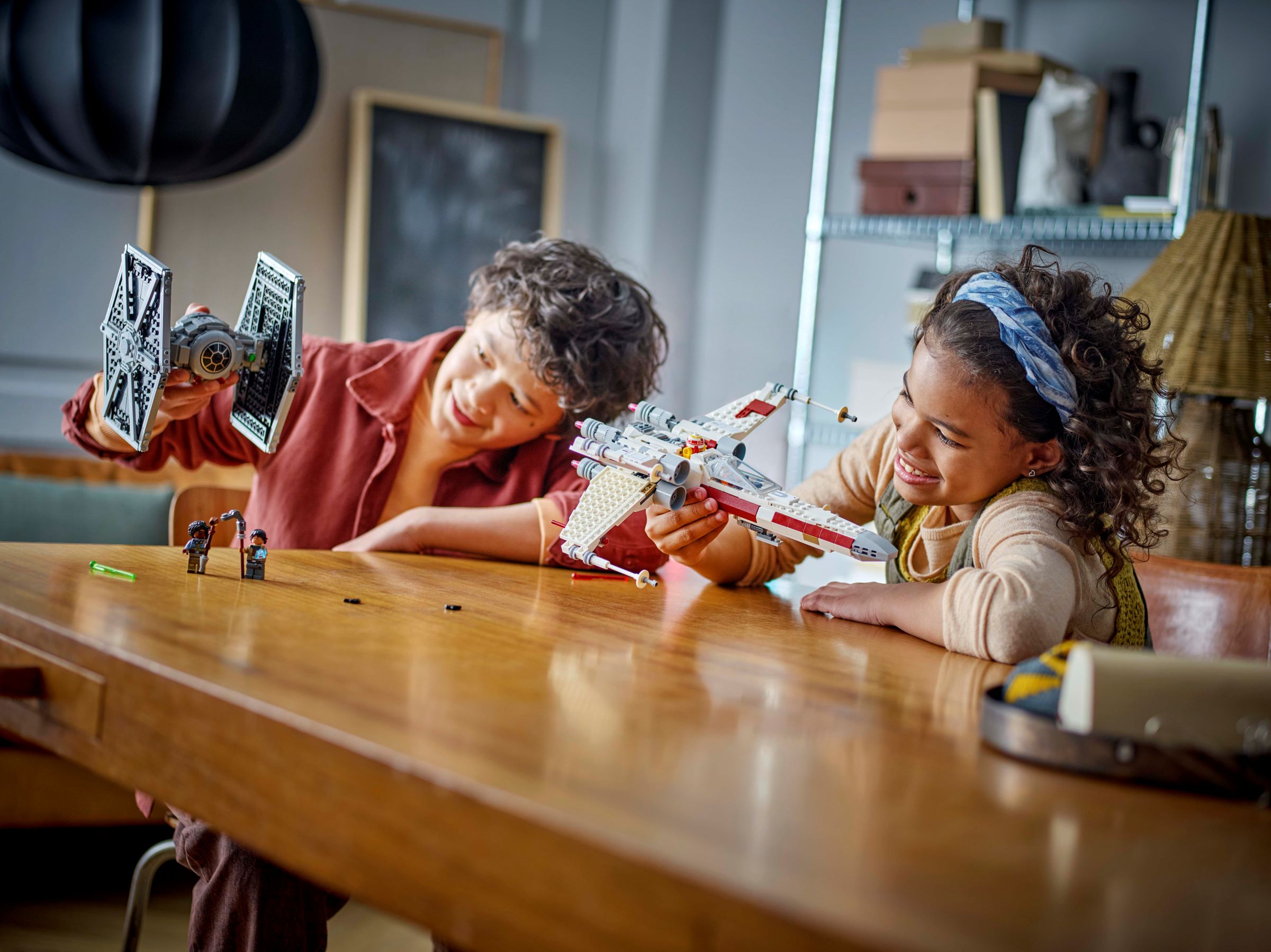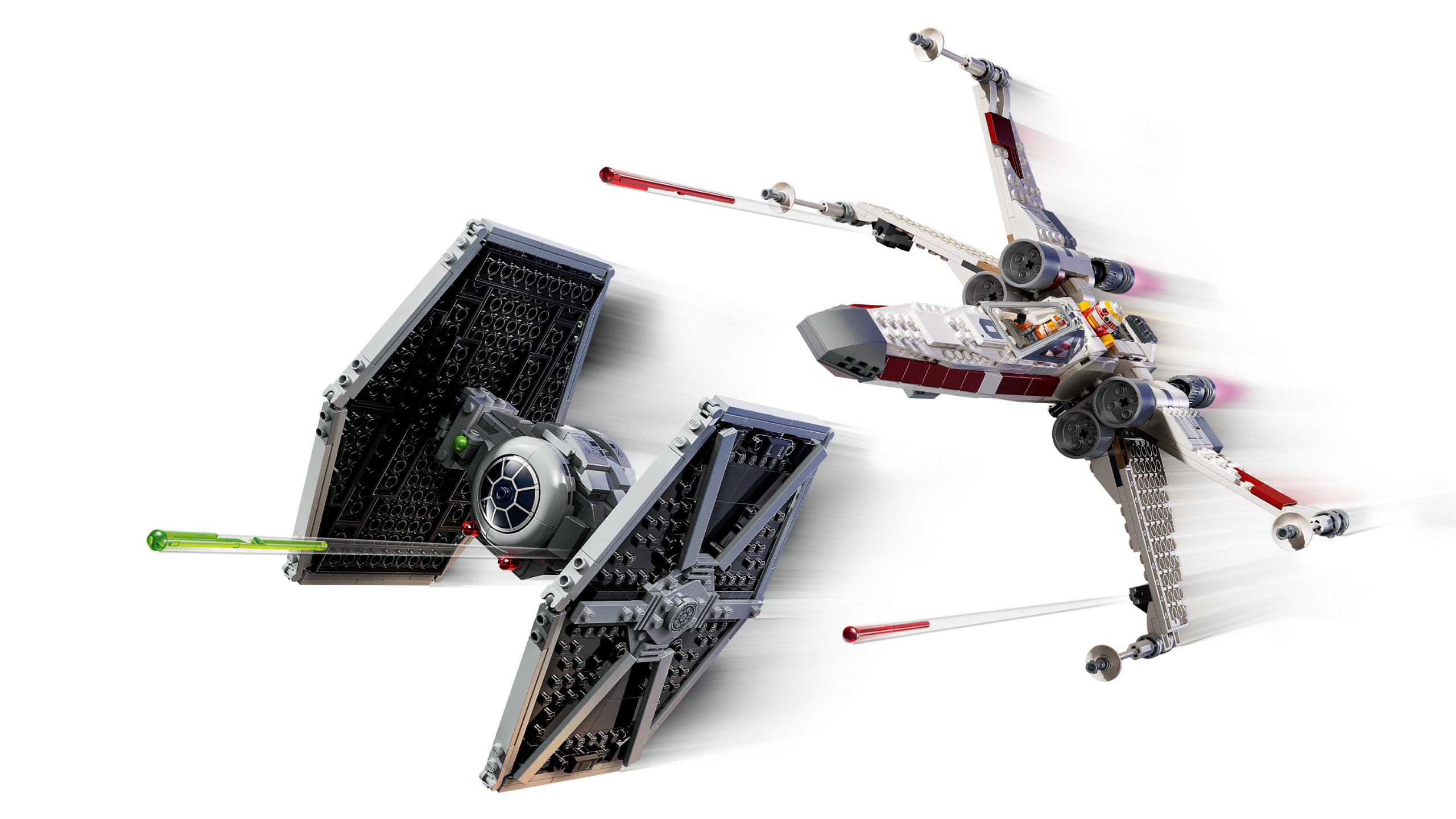 Recreate mash-up starfighters from the LEGO® Star Wars™: Rebuild the Galaxy Disney special with this TIE Fighter & X-Wing Mash-up (75393) buildable toy playset for kids. A cool LEGO gift for boys, girls and any Star Wars fans, the set features a ‘TIE-wing’ and ‘X-fighter’, each with an opening cockpit for a LEGO minifigure and 2 spring-loaded shooters. Simply remove the locking pins to detach the wings from the hull of each buildable vehicle toy and rebuild to create the familiar, iconic TIE fighter and X-wing. The wings of the ‘TIE-wing’/X-fighter are adjustable for flight and attack modes and, once rebuilt as the X-wing, the retractable landing gear can be used.