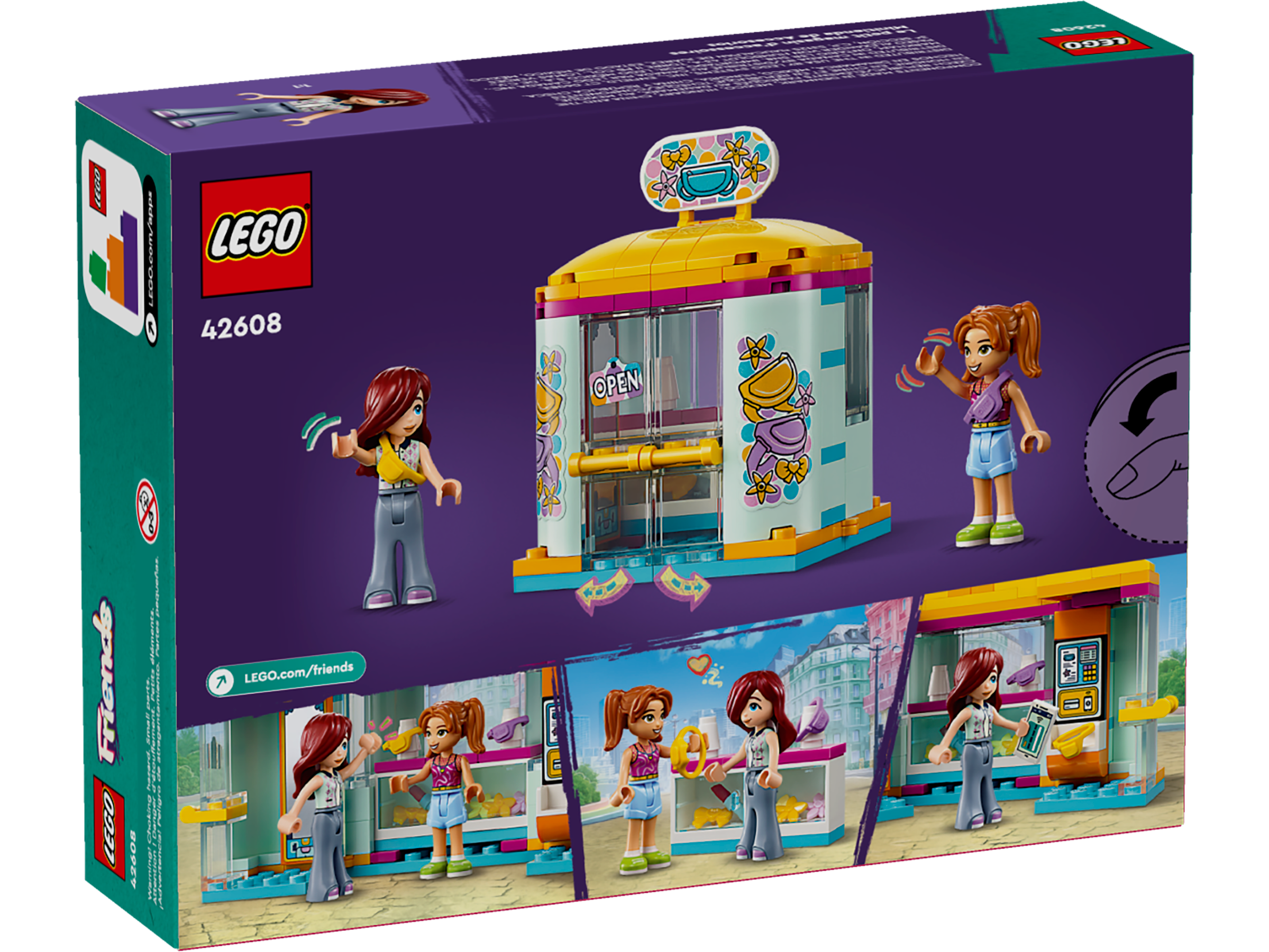 Give creative kids a treat with this LEGO® Friends Tiny Accessories Shop (42608) building toy for girls, boys and kids aged 6 plus. Kids who love toy beauty shops will enjoy helping Paisley and Candi shop for a new bumbag and hair accessories. Kids can act out the story as the characters use the mirror to check out their new look, then pay using their smartphones at the self-service checkout.