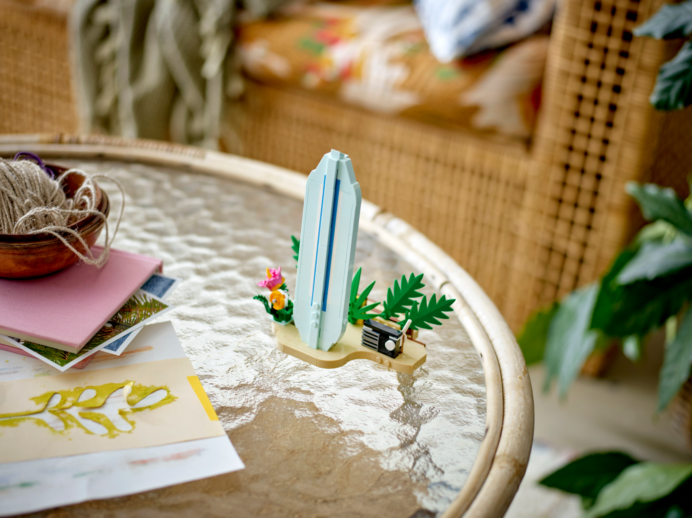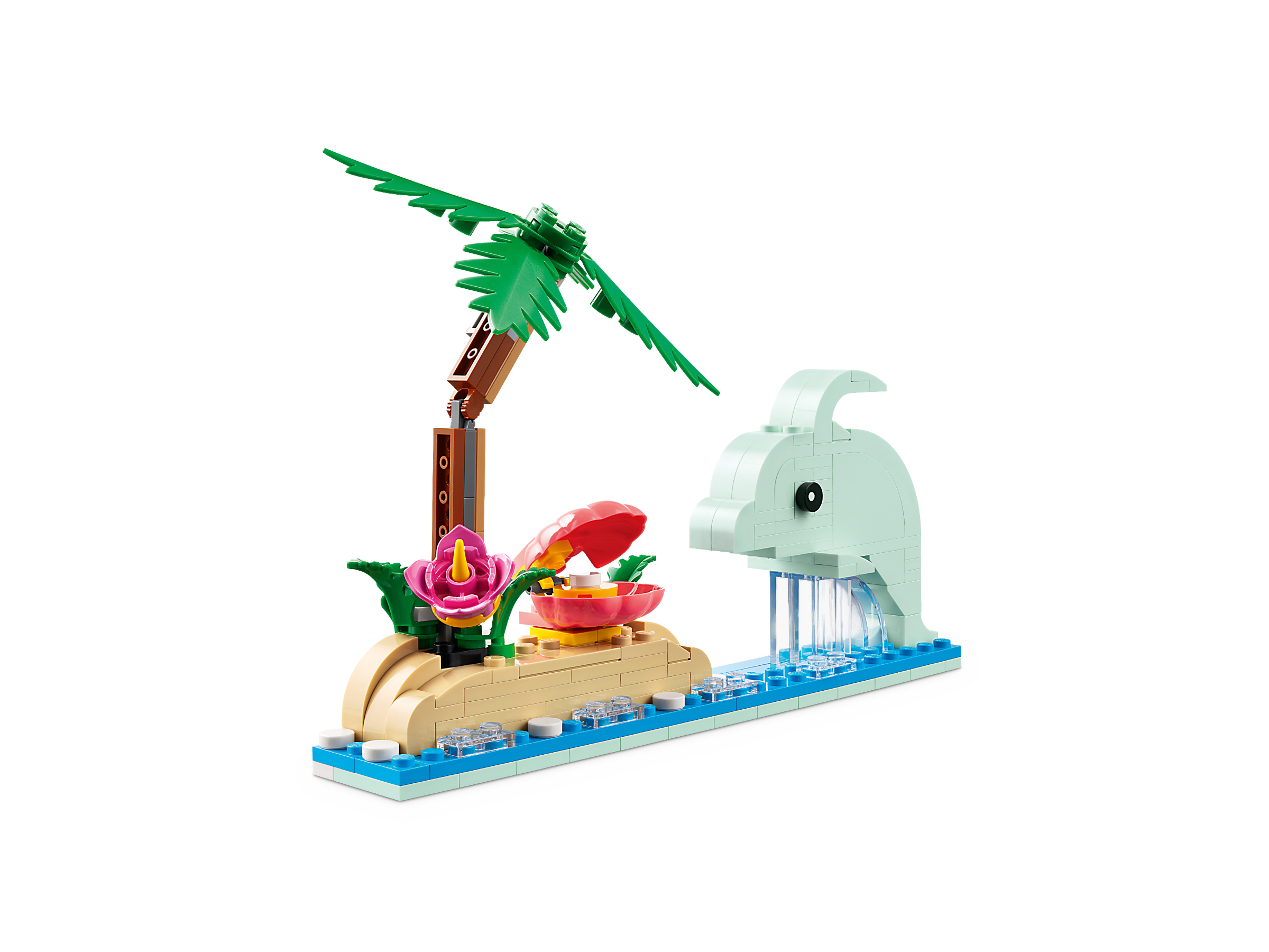 This LEGO Creator 3in1 set gives kids 3 different build-and-play experiences using the same bricks. They can build a ukulele instrument toy, rebuild it into a small leaping dolphin toy on an ocean and beach stand, with a palm tree, flowers and a seashell, or make a detachable surfboard toy on a beach scene stand with flowers and a radio.
