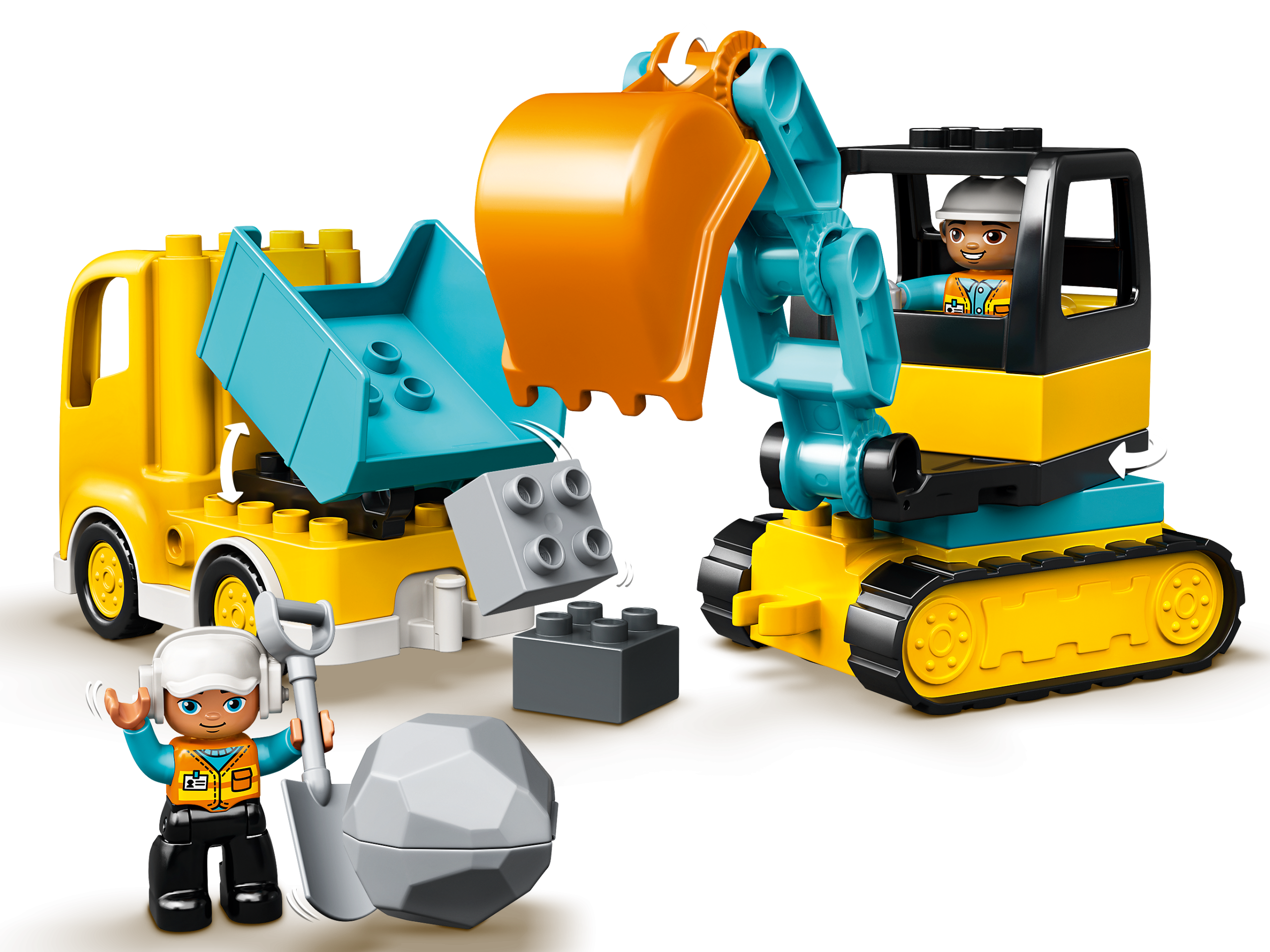 LEGO® DUPLO® Truck & Tracked Excavator (10931) encourages little builders to explore endless open-ended play. As they act out imaginative construction-site scenes with the toy truck, digger and 2 construction workers, toddlers develop valuable physical and cognitive skills that last a lifetime.