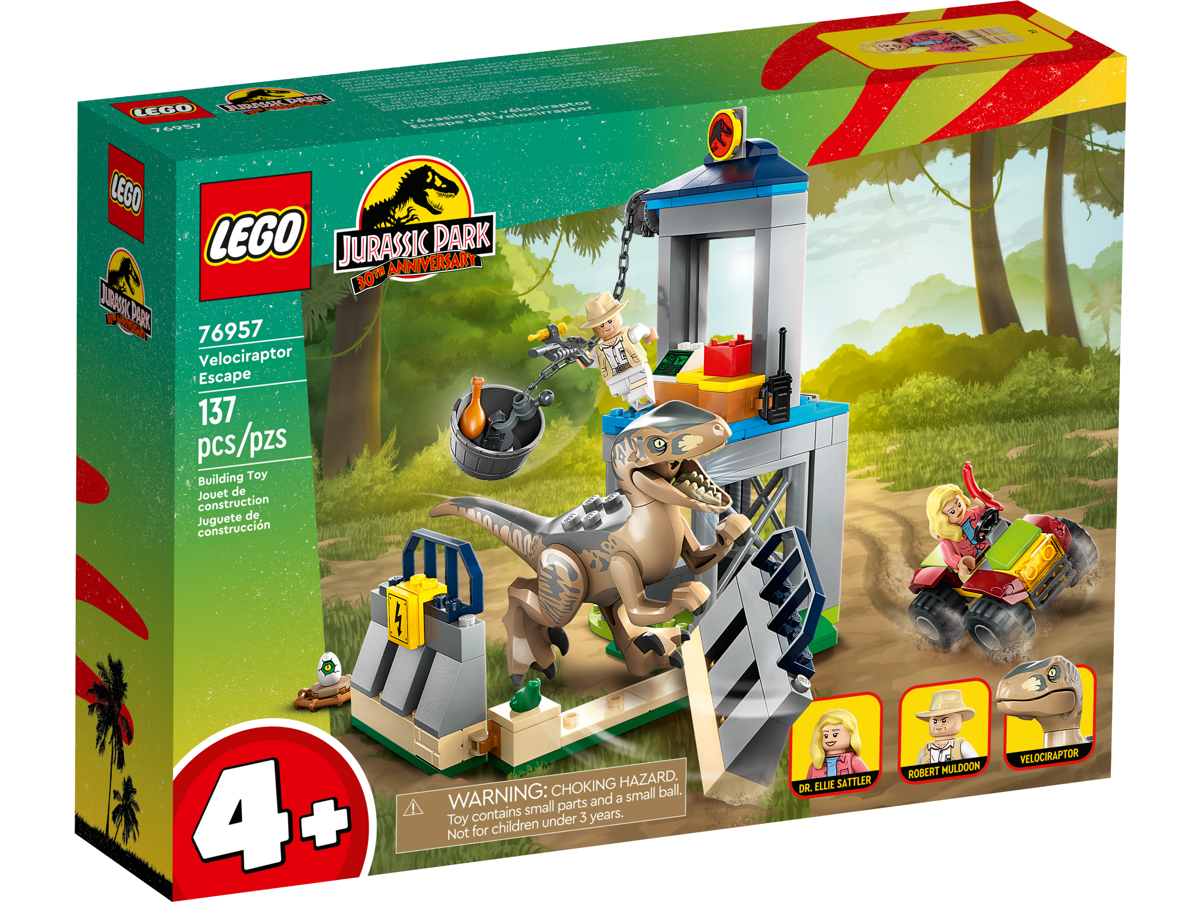 Youngsters can learn to build and play with this awesome LEGO® Jurassic World Velociraptor Escape (76957) toy playset for ages 4 and up. Inspired by an iconic Jurassic Park scene, it features a dinosaur pen with a tower, breakout function and winch to lower food to the Velociraptor figure. A cool gift idea for young kids, the set also includes a buildable off-roader vehicle, 2 minifigures and fun accessory elements to inspire creative play.