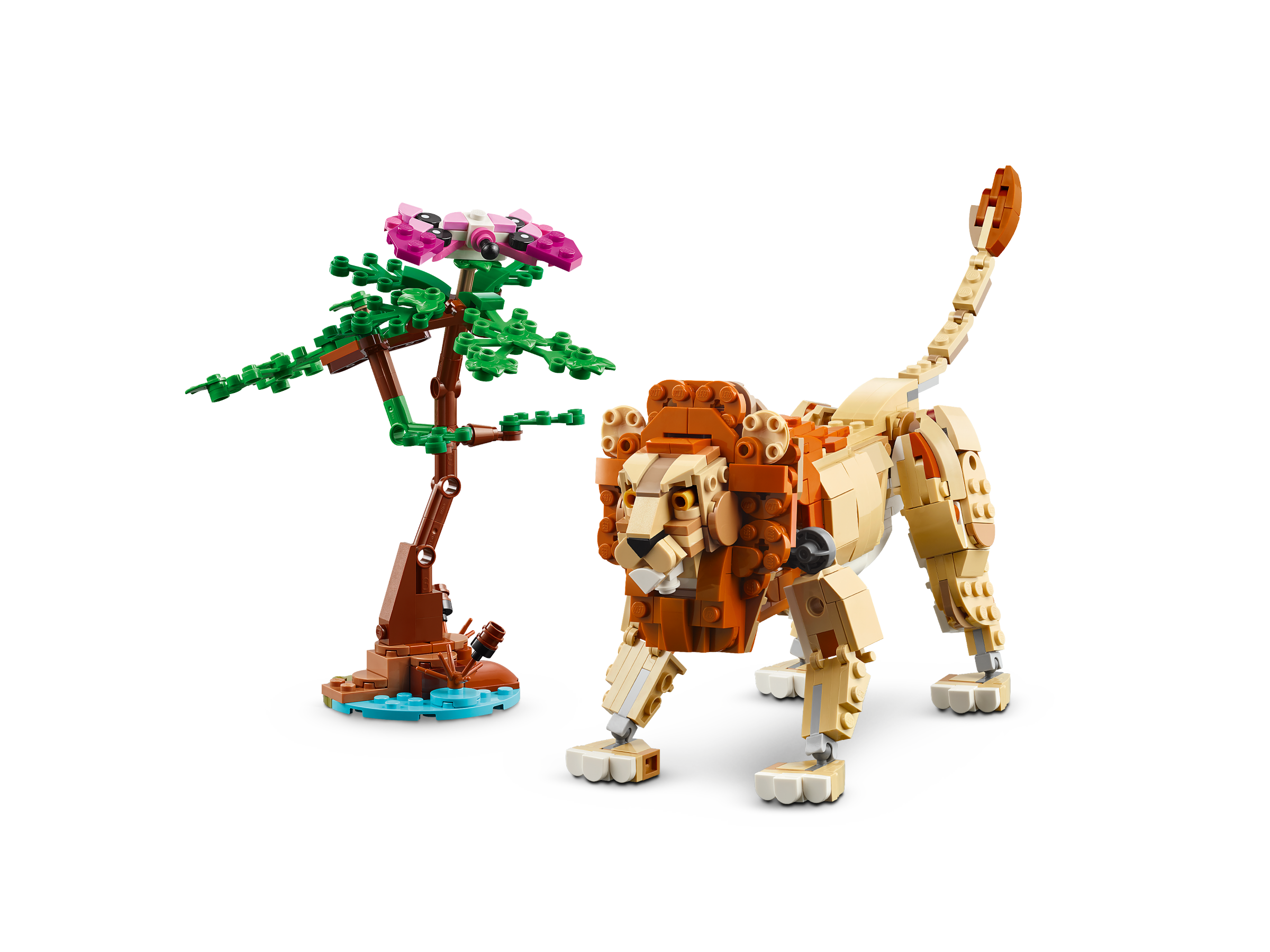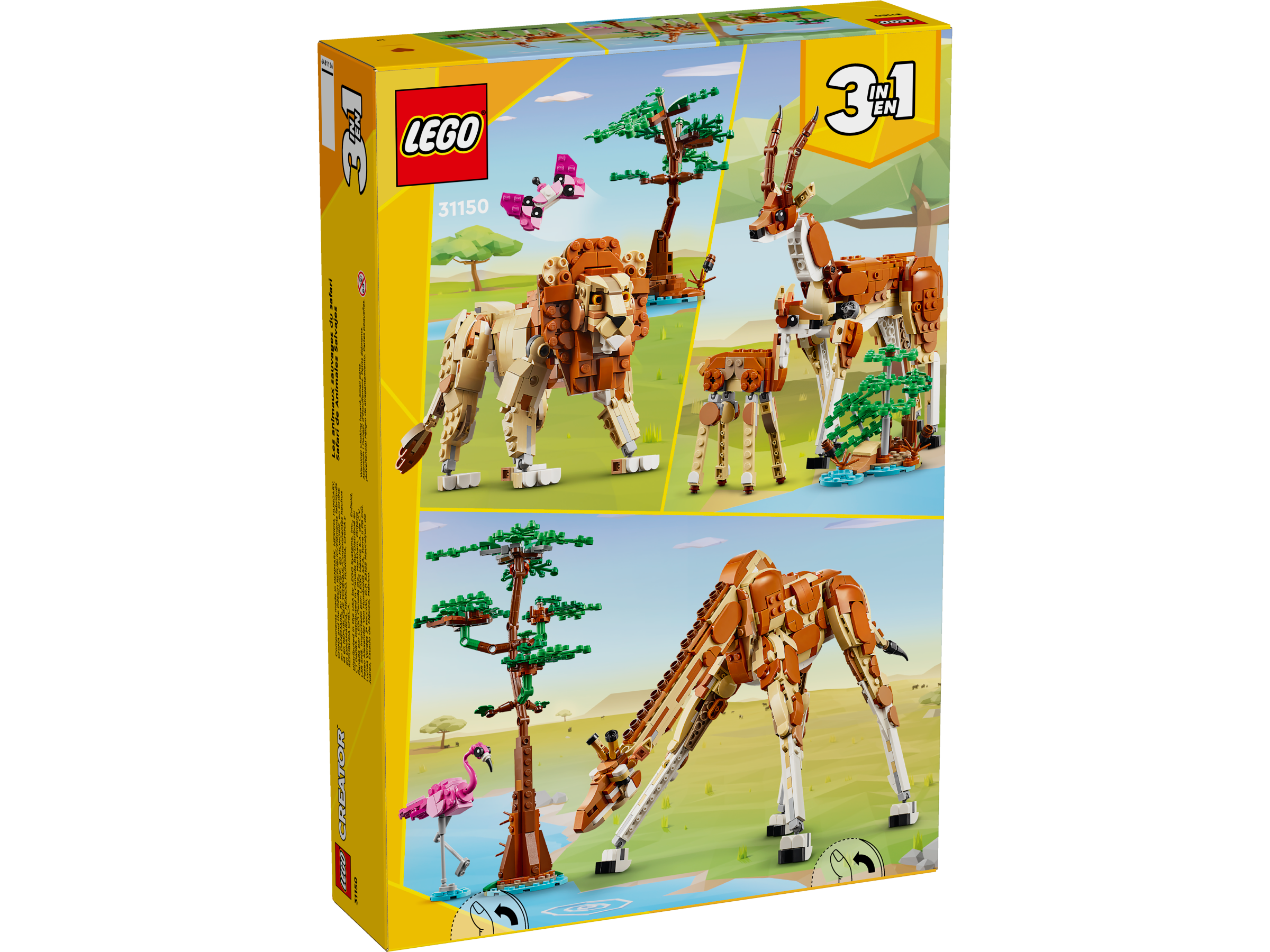 This LEGO set offers kids a world of play possibilities with 3 different animal toys to build using the same bricks. They can build a posable giraffe toy with a tree and a flamingo, rebuild it into 2 posable gazelle toys, a mother with her calf, plus 2 bushes, or turn it into a lion toy with a tree and a butterfly.