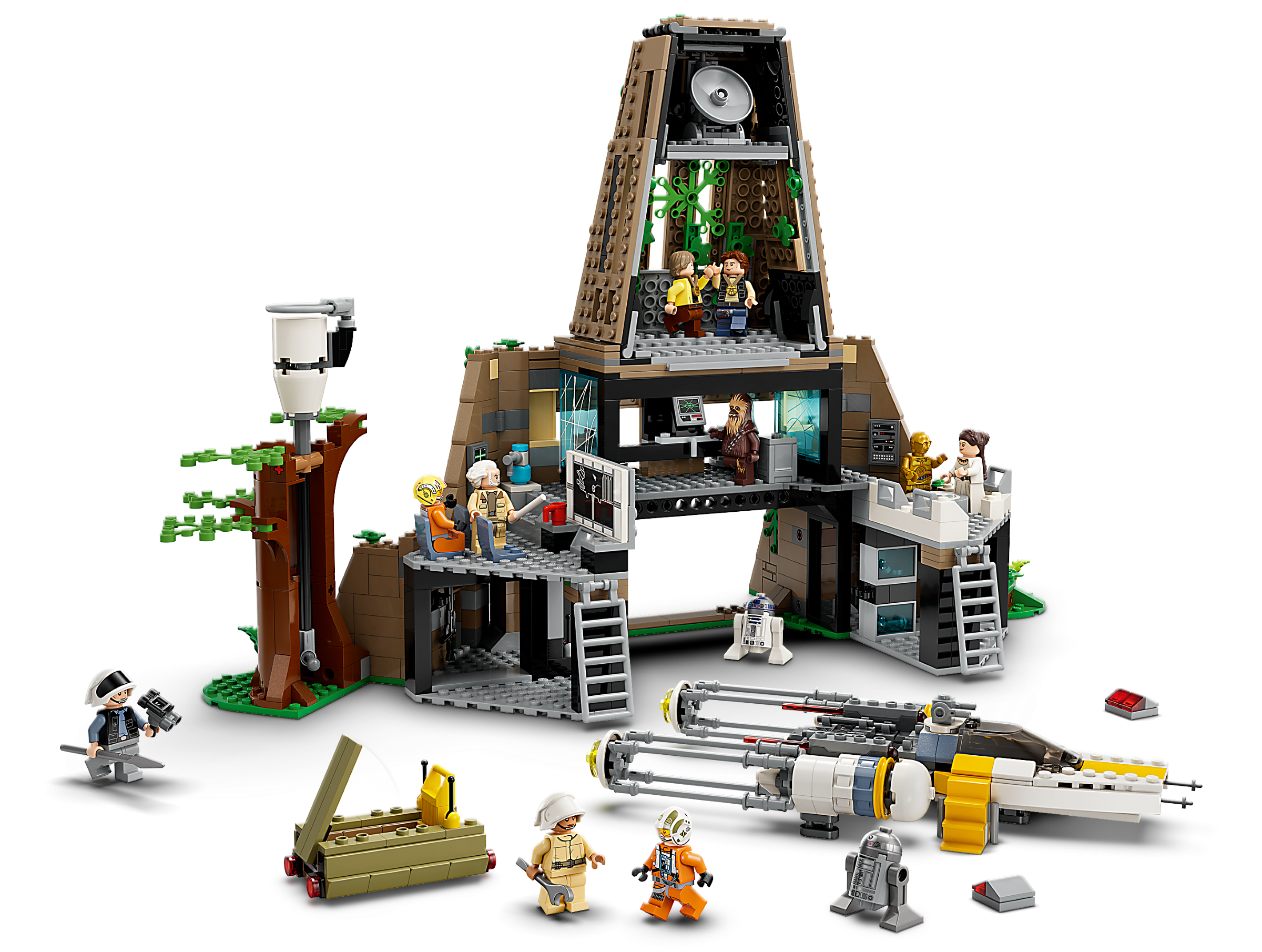 Relive memorable Star Wars: A New Hope moments with this LEGO® brick-built Yavin 4 Rebel Base (75365) for ages 8 . It features a detailed command room, pilot briefing room, medal ceremony stage, 2 rotating stud shooters, a buildable tree with an elevating watchtower, a Y-wing with 2 spring-loaded shooters, plus a service cart. Bring classic scenes to life with 12 LEGO Star Wars™ characters, including a new-for-August-2023 Garven Dreis (Red Leader) LEGO minifigure and an R2-BHD LEGO droid figure, plus signature weapons and accessories such as medals to present to Luke Skywalker and Han Solo.