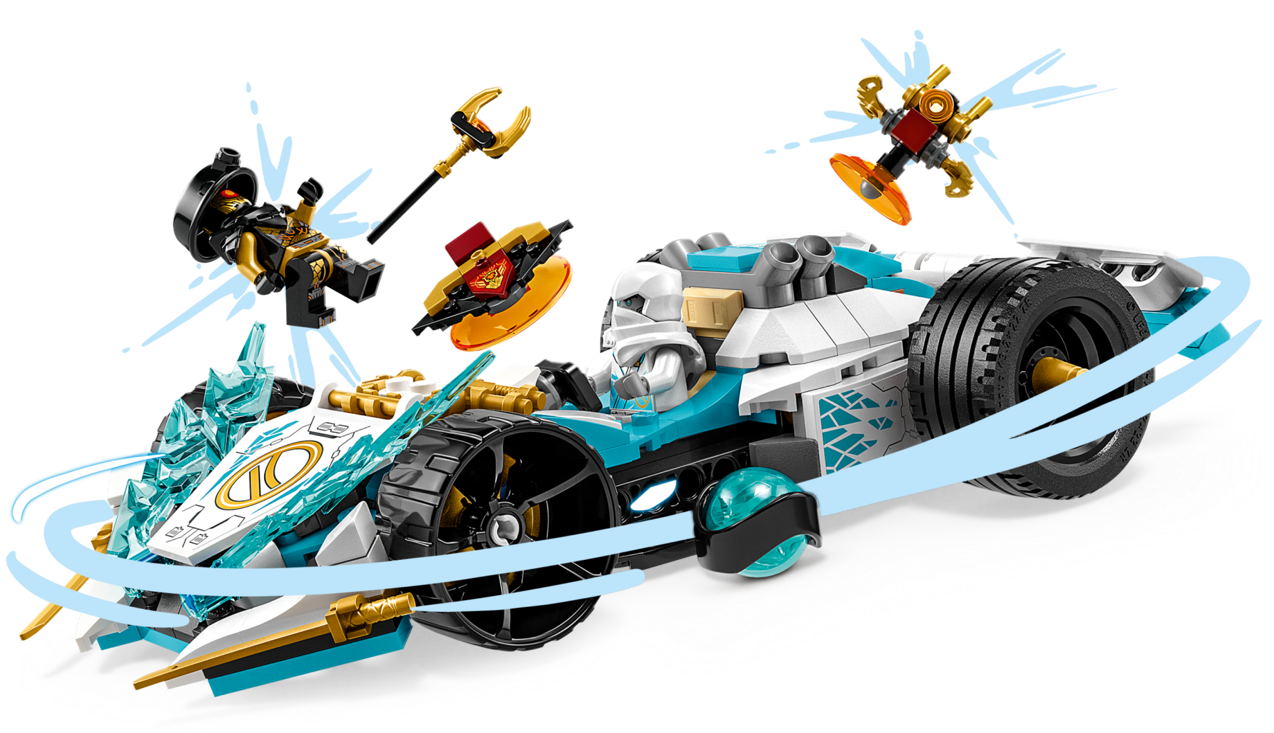 Ninja fans aged 7 will love playing out scenes from the NINJAGO® Dragons Rising TV series using the never-before-seen spinning function on Zane’s Dragon Power Spinjitzu Race Car (71791). When they push down the spoiler at the back, the car’s rear wheels lift and it moves on its dragon power elements so that the ninja can take on the evil dragon hunters.